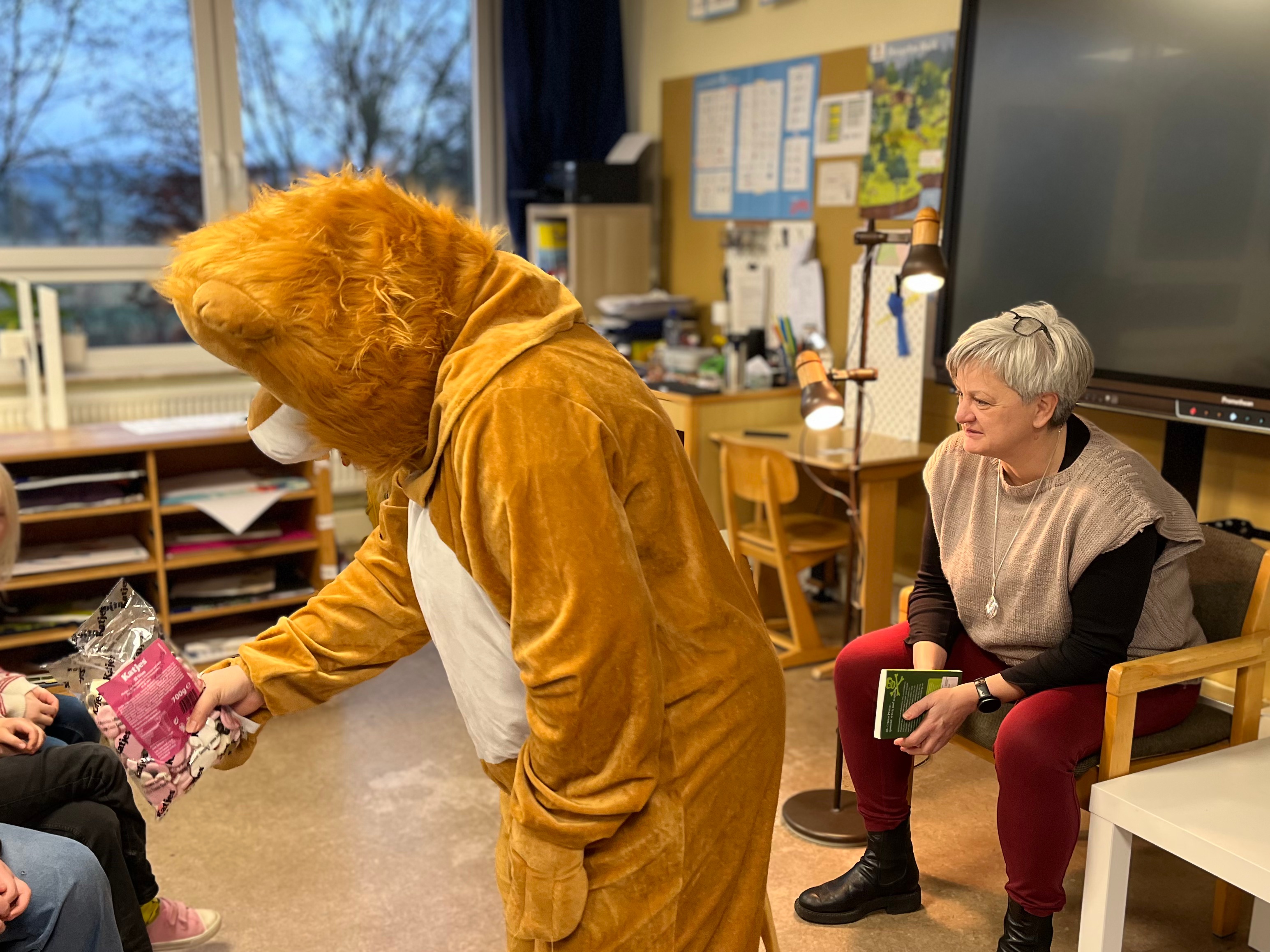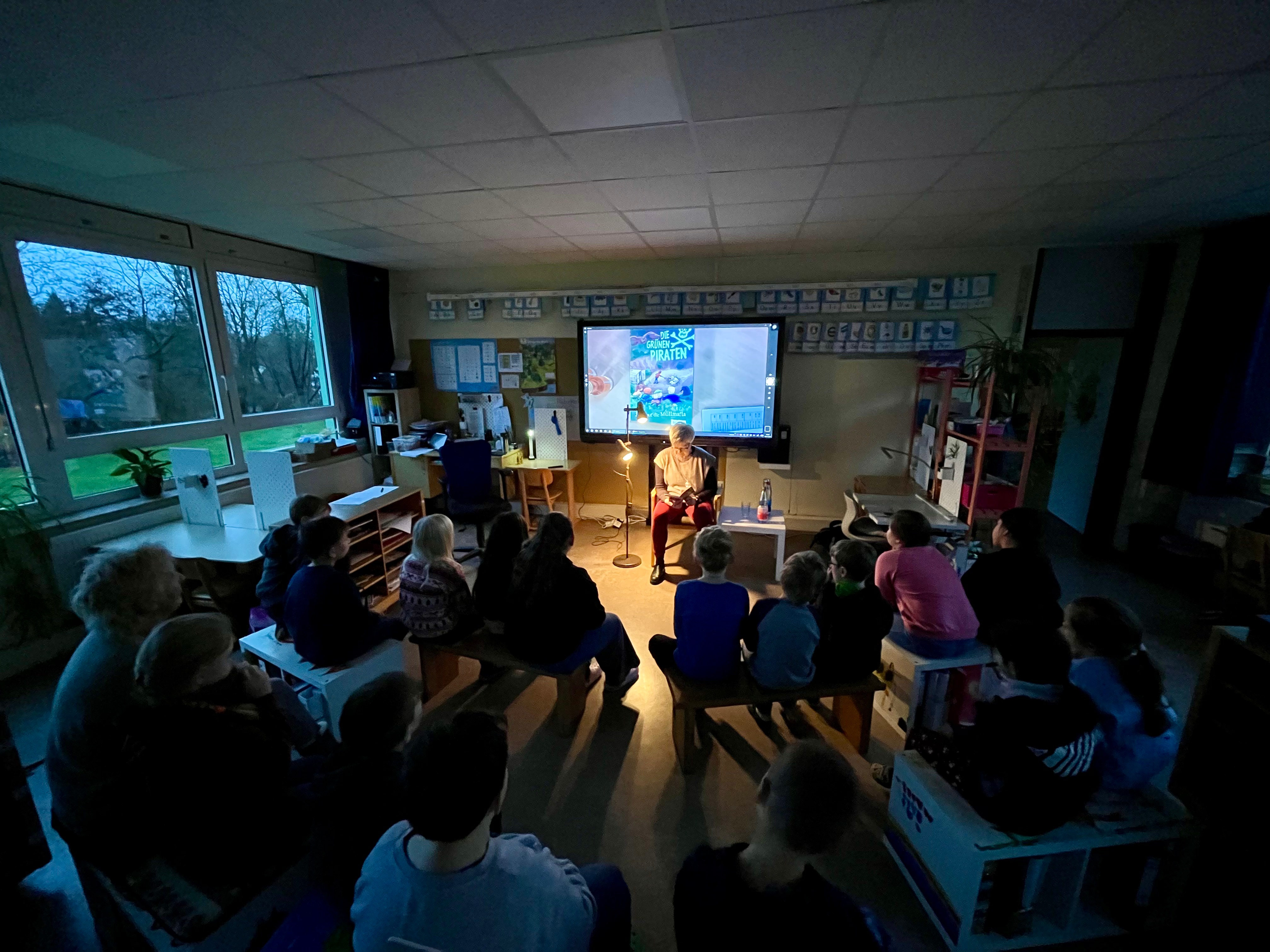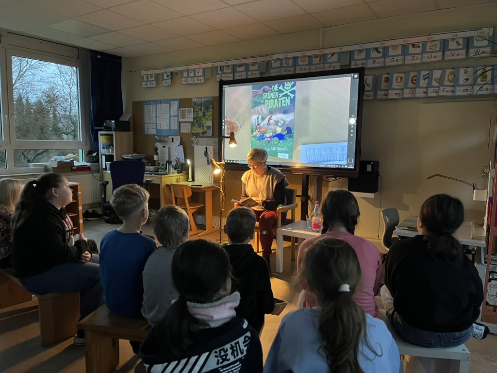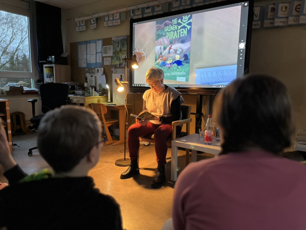 Frau Caspar gestaltete die Lesung sehr ansprechend und schaffte durch ihre angenehme Art und ihre schöne Vorlesestimme eine konzentrierte Atmosphäre, in der die Kinder der Geschichte aufmerksam folgten. Was uns besonders freut: Das Buch verbleibt als Geschenk in der Schule. Sobald alle interessierten Kinder die Geschichte zu Ende gelesen haben, wird das Exemplar in den Bestand unserer Schulbibliothek übernommen.