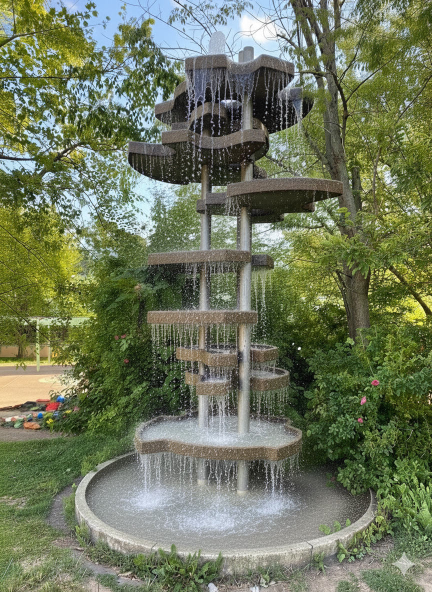 Er erinnert an die 60er Jahre, ist stolze 4 Meter hoch und leider seit Jahren… nun ja, staubtrocken. Unser Schulbrunnen auf dem Hof der Gudrun-Pausewang-Schule wartet auf sein Comeback. Wir wollen ihn nicht einfach nur reparieren, wir wollen ihn intelligent und nachhaltig machen!