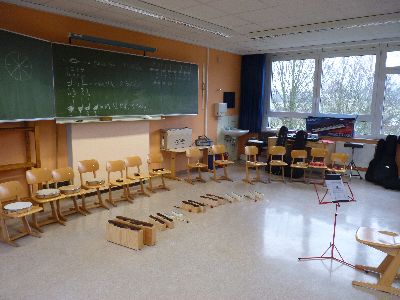 Durch die vorhandenen finanziellen Mittel konnten bereits verschiedene Instrumente gekauft werden. Klangstäbe kamen unter anderem bei dem Lied „Ich bau mit meinen Händen“ (siehe Foto) zum Einsatz. Mit Hilfe des Klassensatzes Djembé -Trommeln sollen in naher Zukunft mit den Schülern Rhythmusübungen stattfinden.