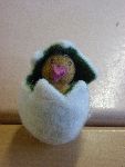 Nachdem die Eier getrocknet waren, legten wir Wolle in die Eier und setzten das Küken hinein. Fertig war unsere Osterüberraschung.