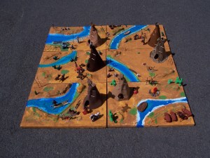 - Mit „FIMO“ haben wir dann noch Büffel, Pferde und Indianer gebastelt und die Figuren mit auf die Platte geklebt.