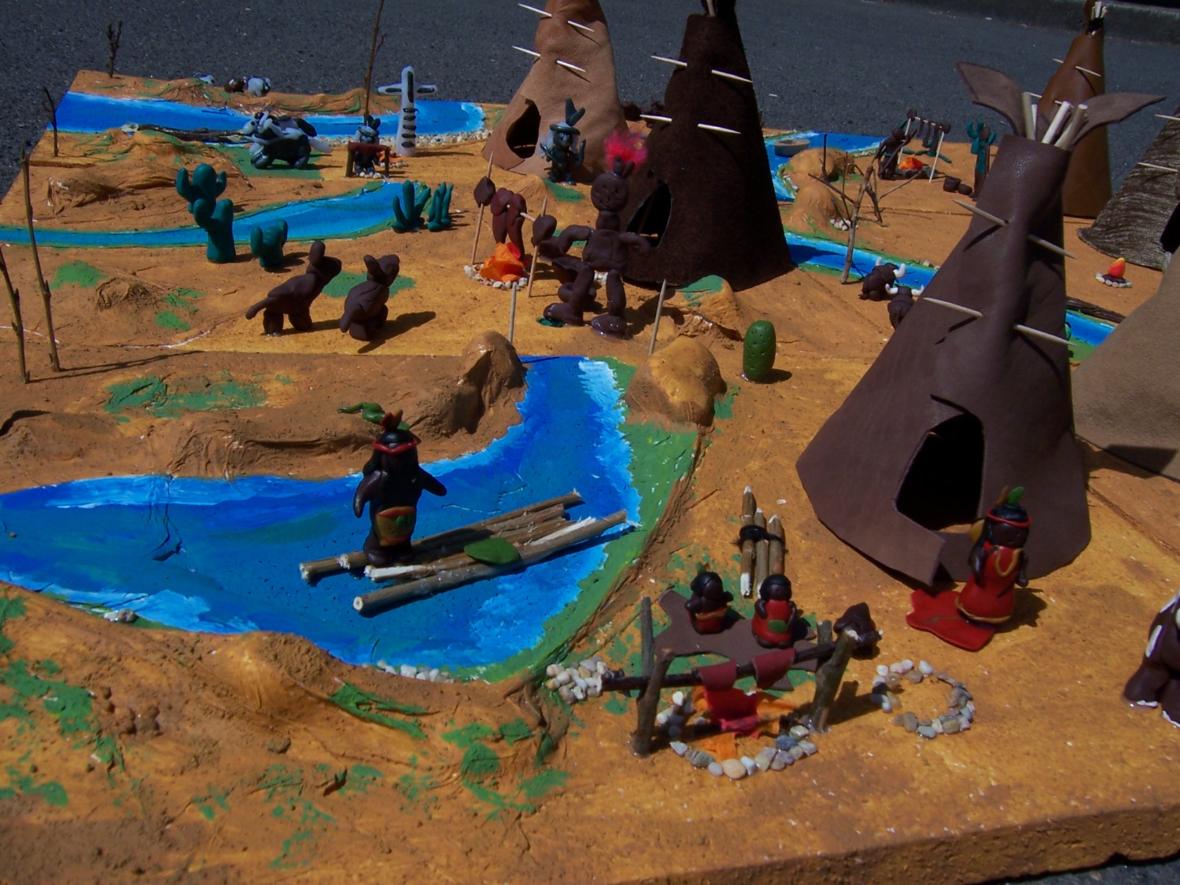 Im Fach Werken haben alle Schüler eine Landschaft mit Tipi gebaut.