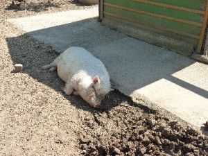 Zum Mittagessen traf man sich dann auf der großen Spielwiese und dem Sinnespfad. Da das Wetter einfach nur mit „herrlich“ zu bezeichnen war, zog der Weg durch den Bach die Kinder – und auch manchen Erwachsenen – magisch an. Es dauerte natürlich nicht lange, bis das erste Kind ins Wasser fiel und die Kleidung völlig durchnässt war. Dank der Sonne trocknete sie aber wieder.