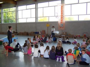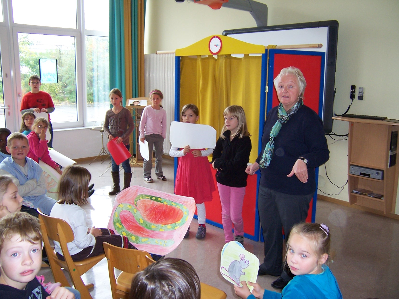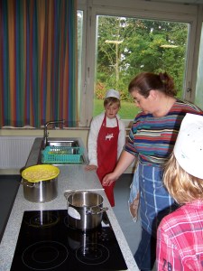 Die Zirkus-Gruppe machte den Anfang in der Turnhalle mit Darbietungen als Akrobaten, Dompteure, Clowns, Seiltänzer, Zauberer und anderen Vorführungen. Weiter ging es dann mit dem gelungenen Kasperletheater in der Aula, das großen Anklang fand. Die Kinder hatten nicht nur ein Stück eingeübt, sondern auch die Figuren dafür hergestellt und das Theater bemalt. In der Küche konnten sich die hungrigen Gäste zwischendurch lustige Brotgesichter mit verschiedenen Gemüsen zubereiten. Am Ende des Tages war alles aus dem großen Angebot restlos verzehrt worden. In den Tagen vorher waren in der Küche alle möglichen gesunden Gerichte entstanden, würzige und auch süße.