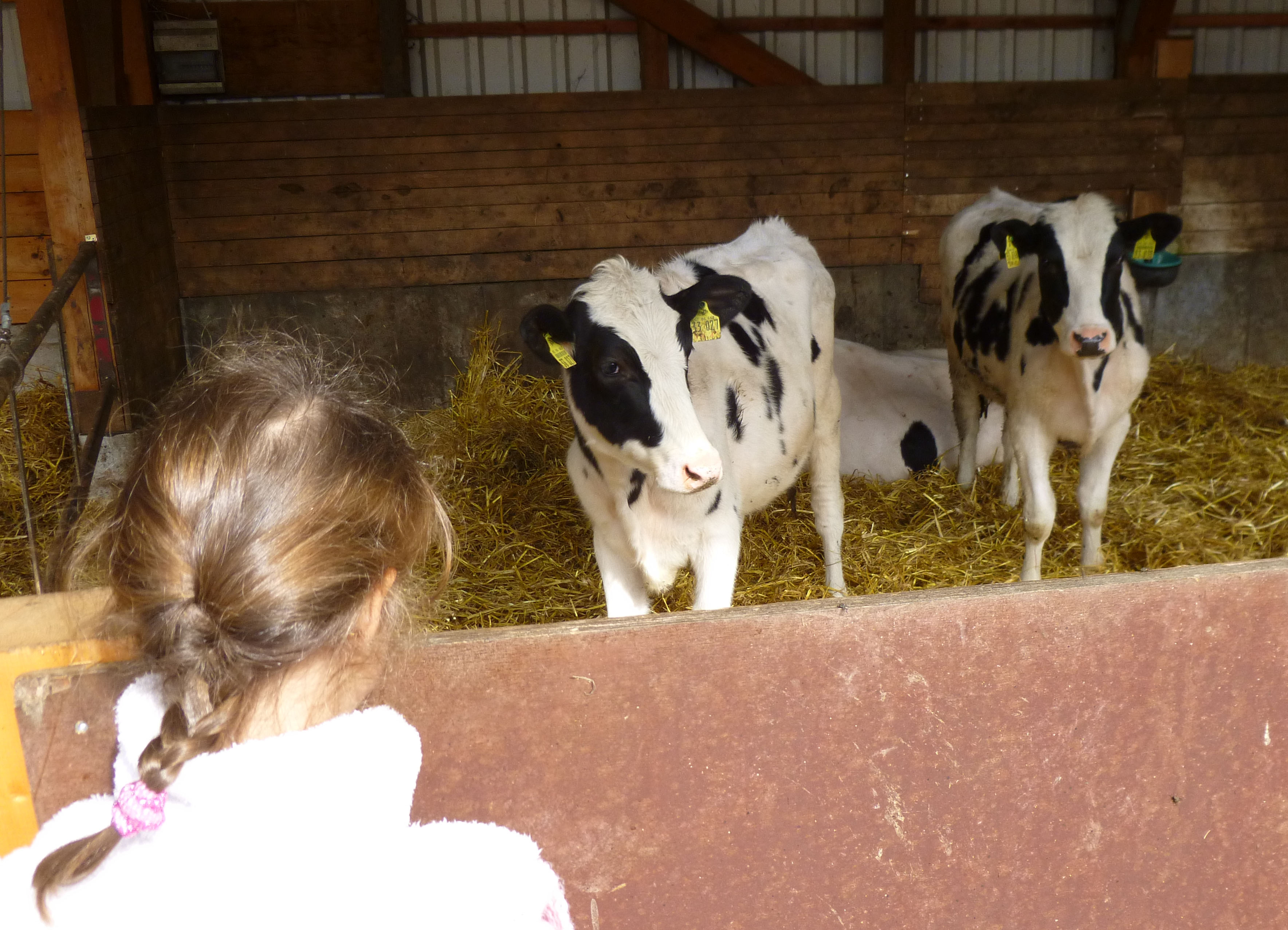 Wir besuchten dann die Kälbchen, sie standen im Kälberstall auf Stroh. Frisch geborene Kälbchen standen in einem Einzelstall. Den nennt man auch Iglu.
