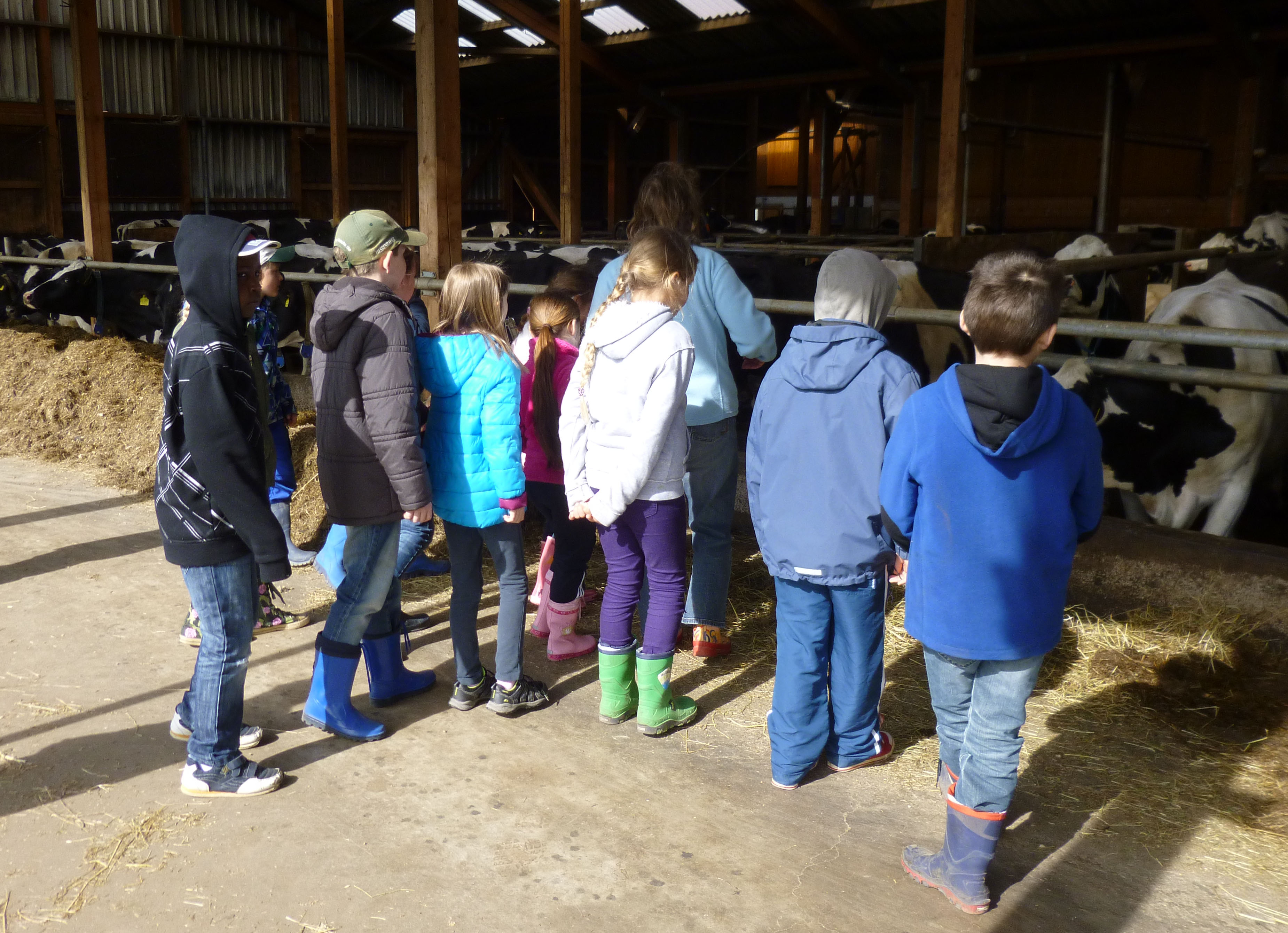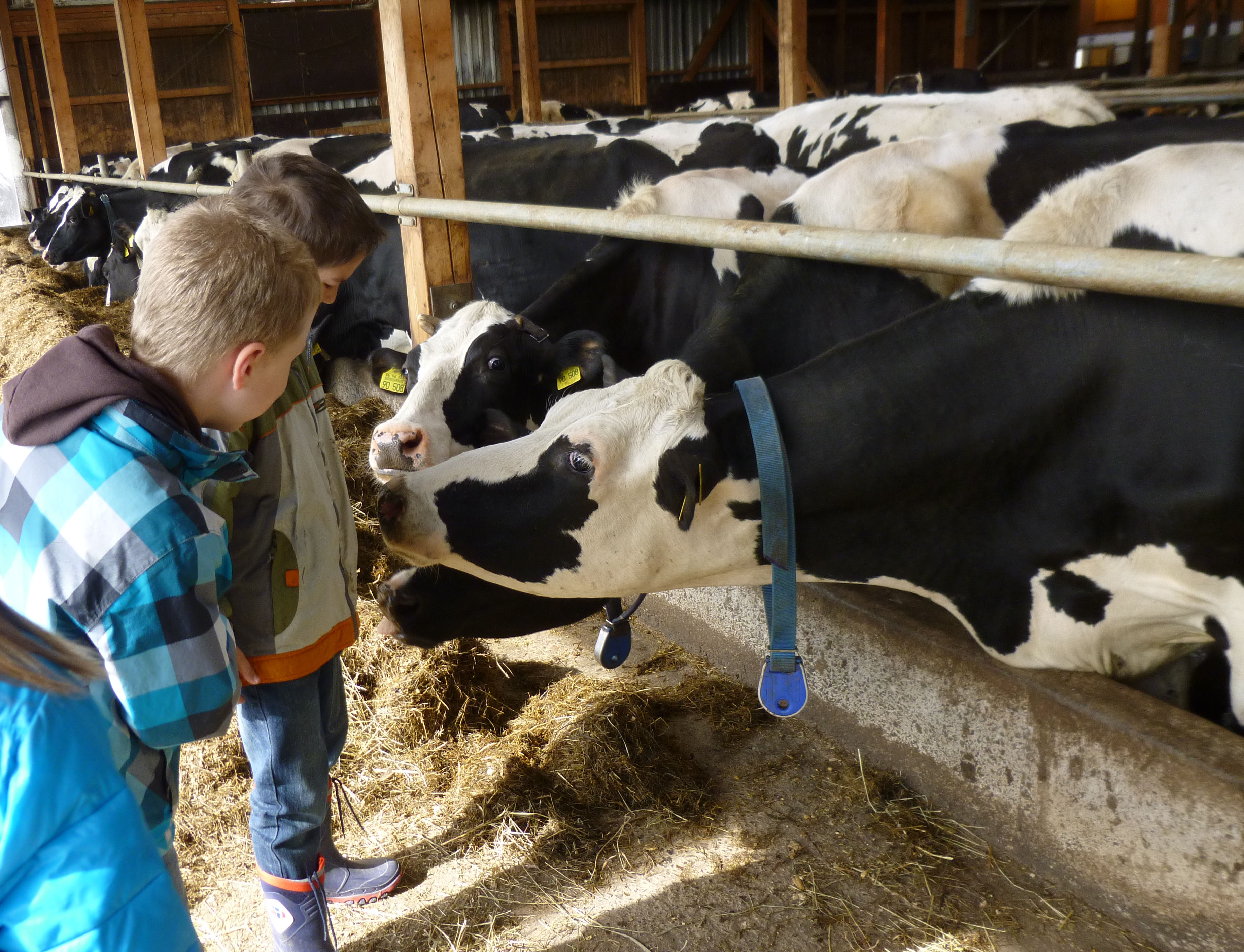 Frau Etling hat uns in ihrem Betrieb herumgeführt und viel erzählt. Die großen landwirtschaftlichen Maschinen haben wir auch gesehen. Am Schluss gab es noch für jeden von uns ein Milch-Trinkpäckchen mit Schoko- oder Erdbeergeschmack.