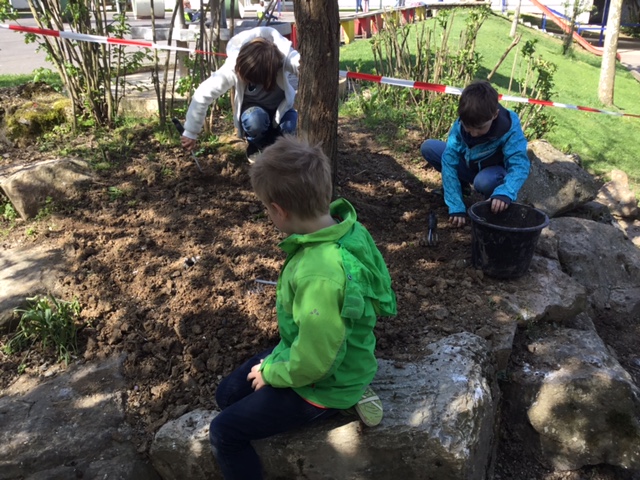 Wildkrautsamen sind die Leibspeise kleiner Finkenarten wie Stieglitz, Bluthänfling und Girlitz. Doch in „ordentlichen“ Gärten und der intensiv bewirtschafteten Feldflur fehlt es den bunten Gesellen meist an Nahrung. Ihre Bestände haben sich in den letzten 20 Jahren halbiert! Mit einer speziellen Ansaatmischung sorgen die Kinder der Klasse 2b im Steingarten der Schule nicht nur für attraktive Farbtupfer, sondern bereiten Stieglitz & Co. auch für den Winter einen gedeckten Tisch, denn nach der Blüte bleiben die Pflanzen stehen. Im nächsten Jahr werden uns und die Vögel dann die zweijährigen Pflanzen erfreuen.