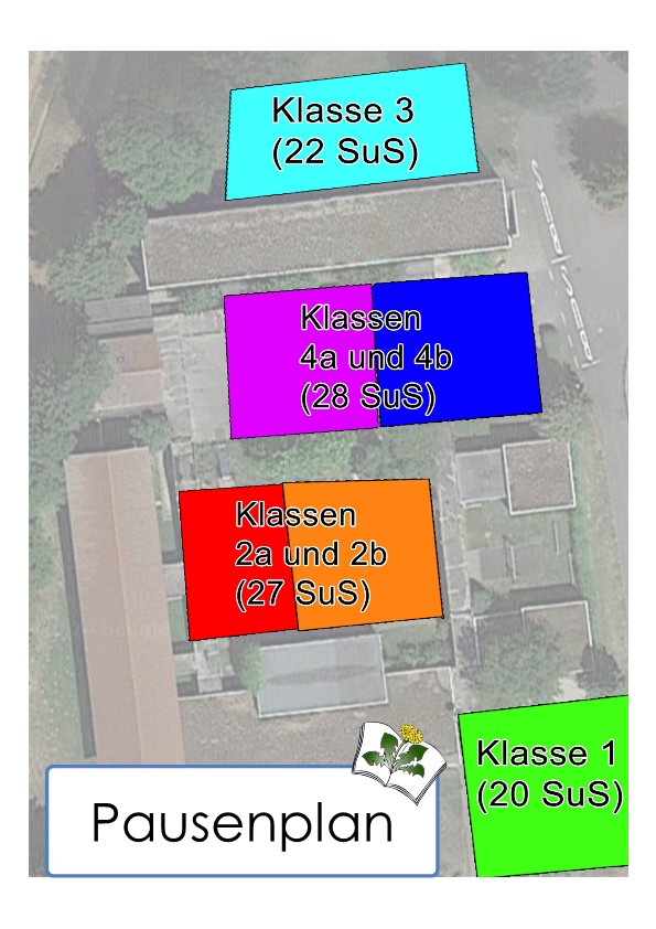 Alle Klassen haben einen festen Platz, an dem sie sich während der Hofpausen aufhalten dürfen. Die Lehrkraft begleitet die Kinder zu Beginn der Pause dorthin. Es gibt weiterhin für jede Klasse einen Platz, an dem sie sich nach den Pausen aufstellen. Hier wird die Klasse nach der Hofpause von einer Lehrkraft abgeholt und in den Klassenraum begleitet.