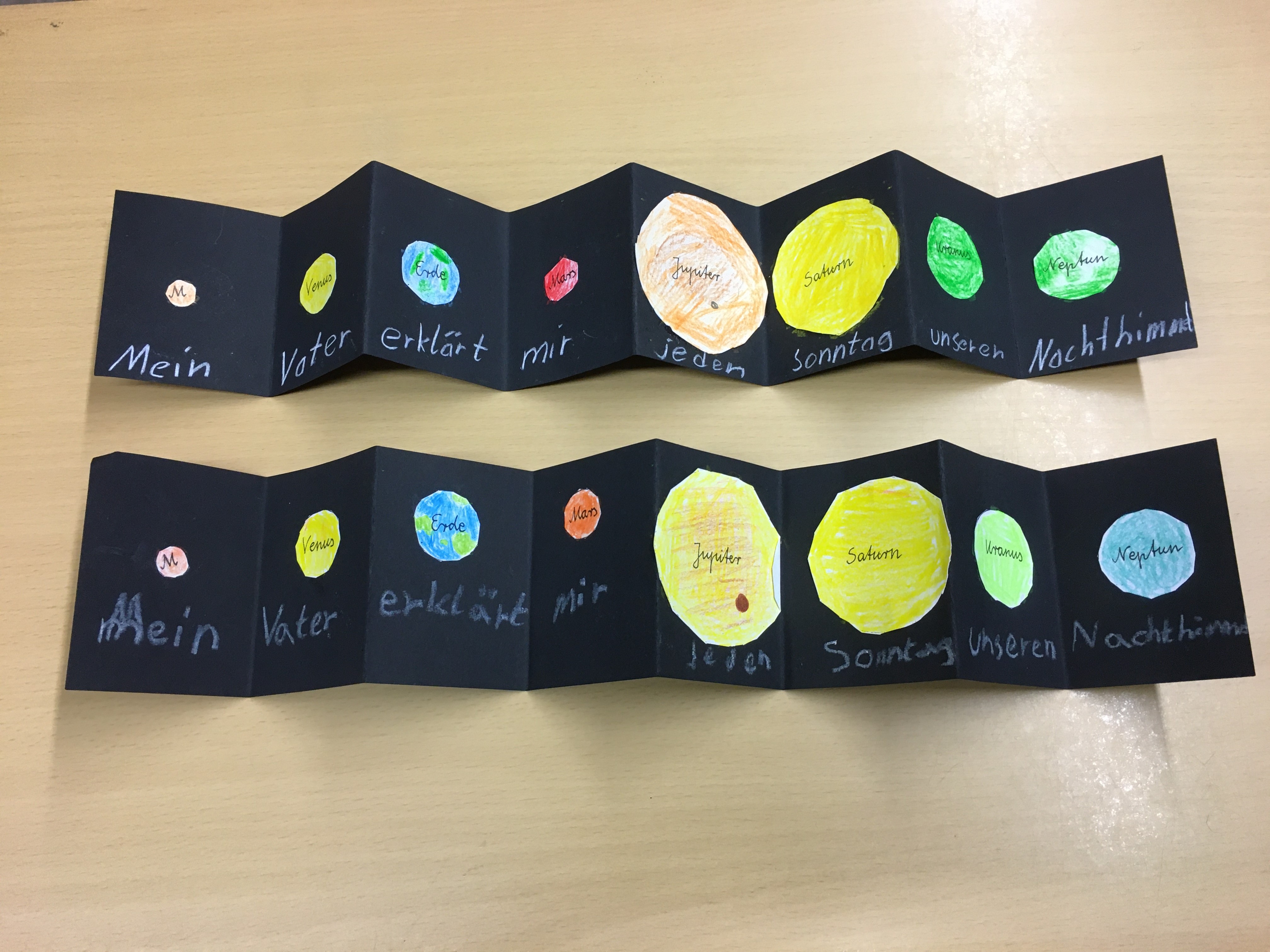 Die zweite Sache war eine Ziehharmonika, die man auch gut knicken musste. Sie war für die Planeten.