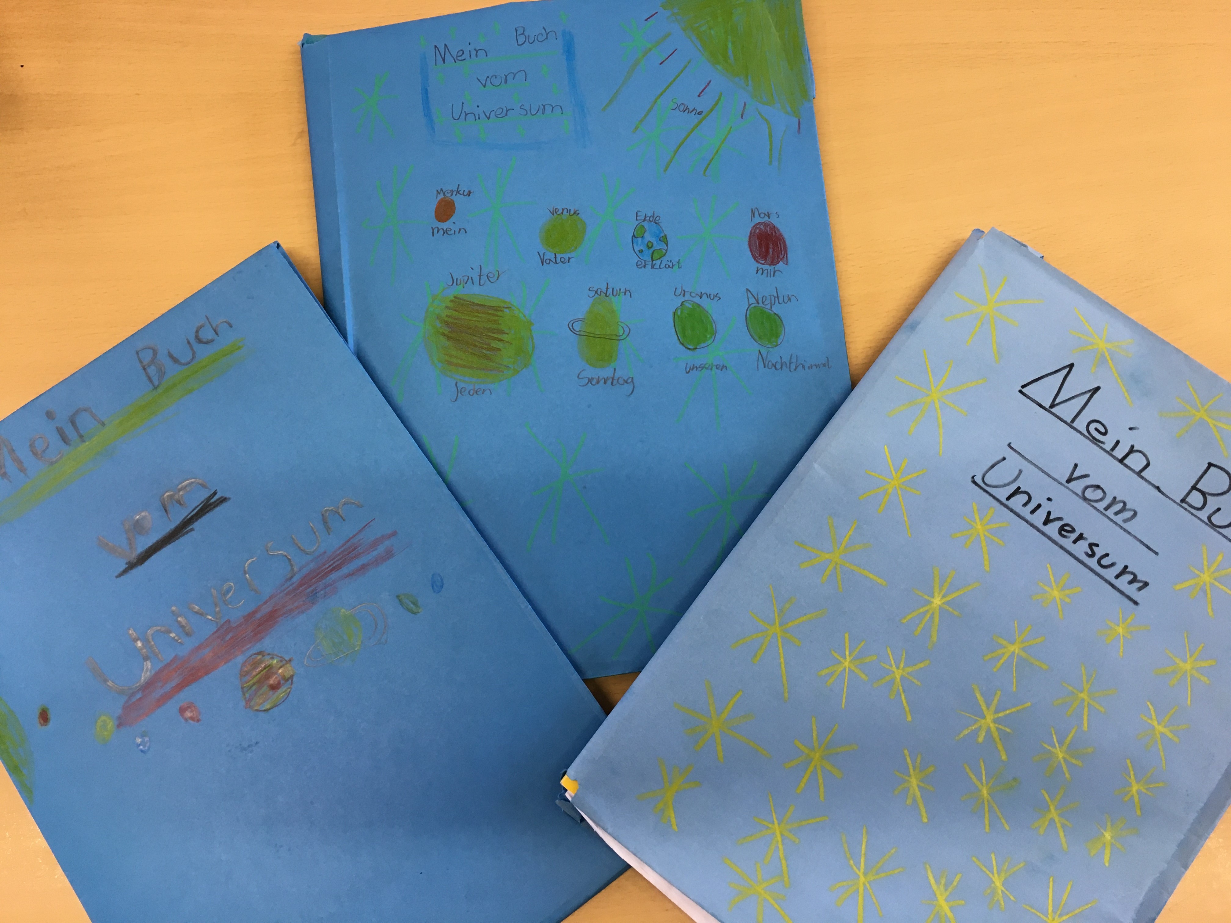 Die letzte Sache war das eigene Sternbild, was man aus goldenen Sternen ausschnitt. Der Umschlag war für ein Planetenheft. Das Ganze dauerte zwei Stunden. Alles machte sehr viel Spaß.
