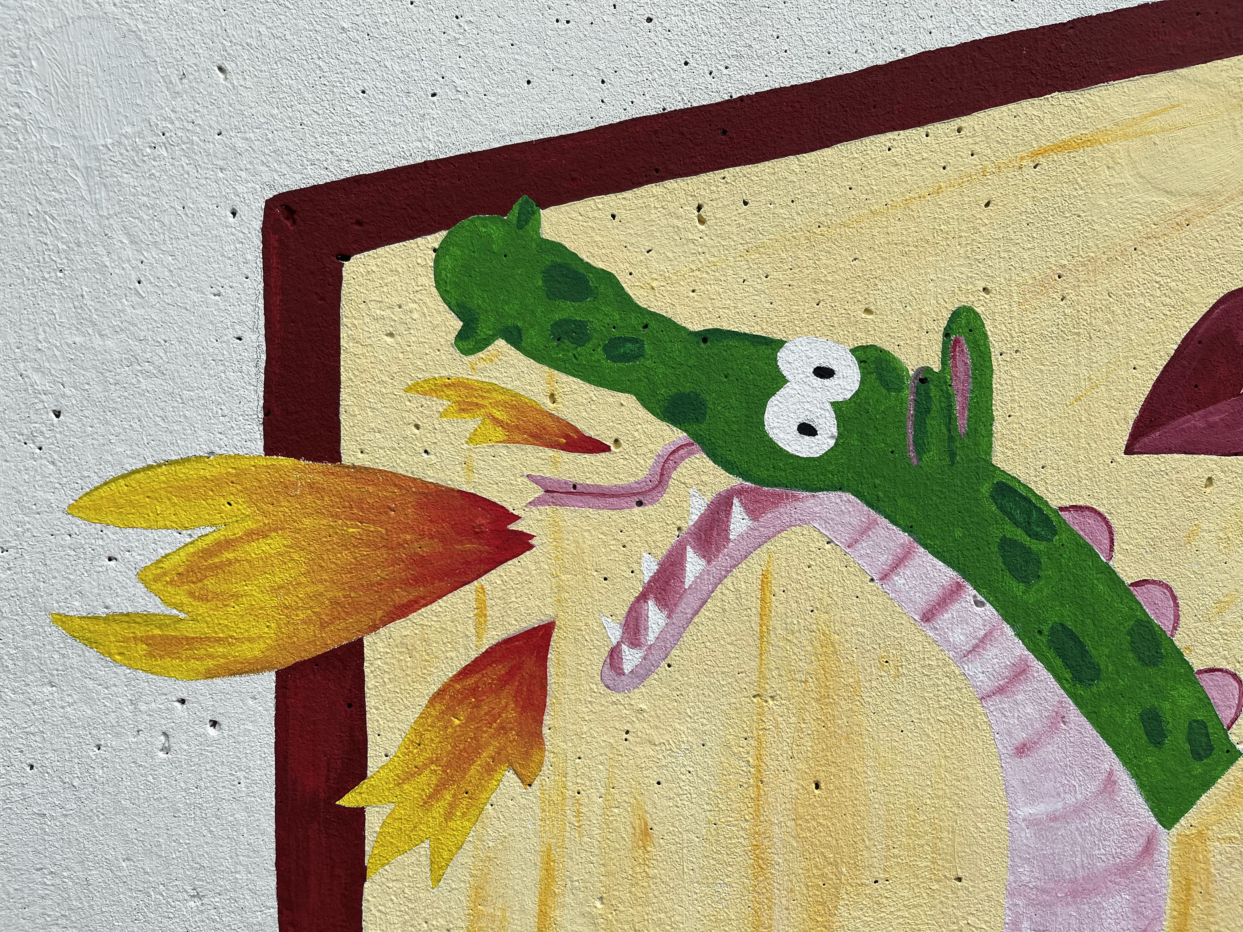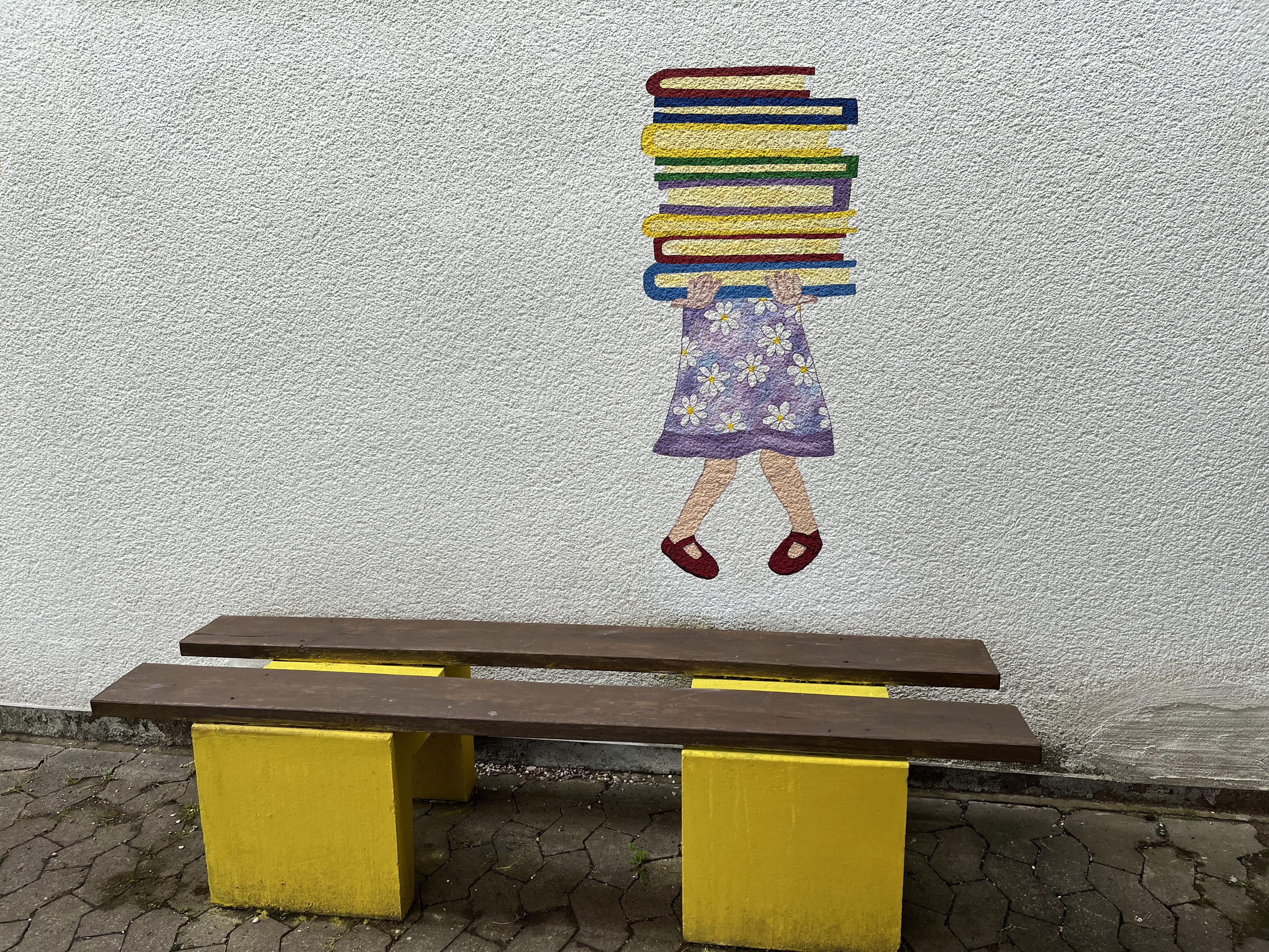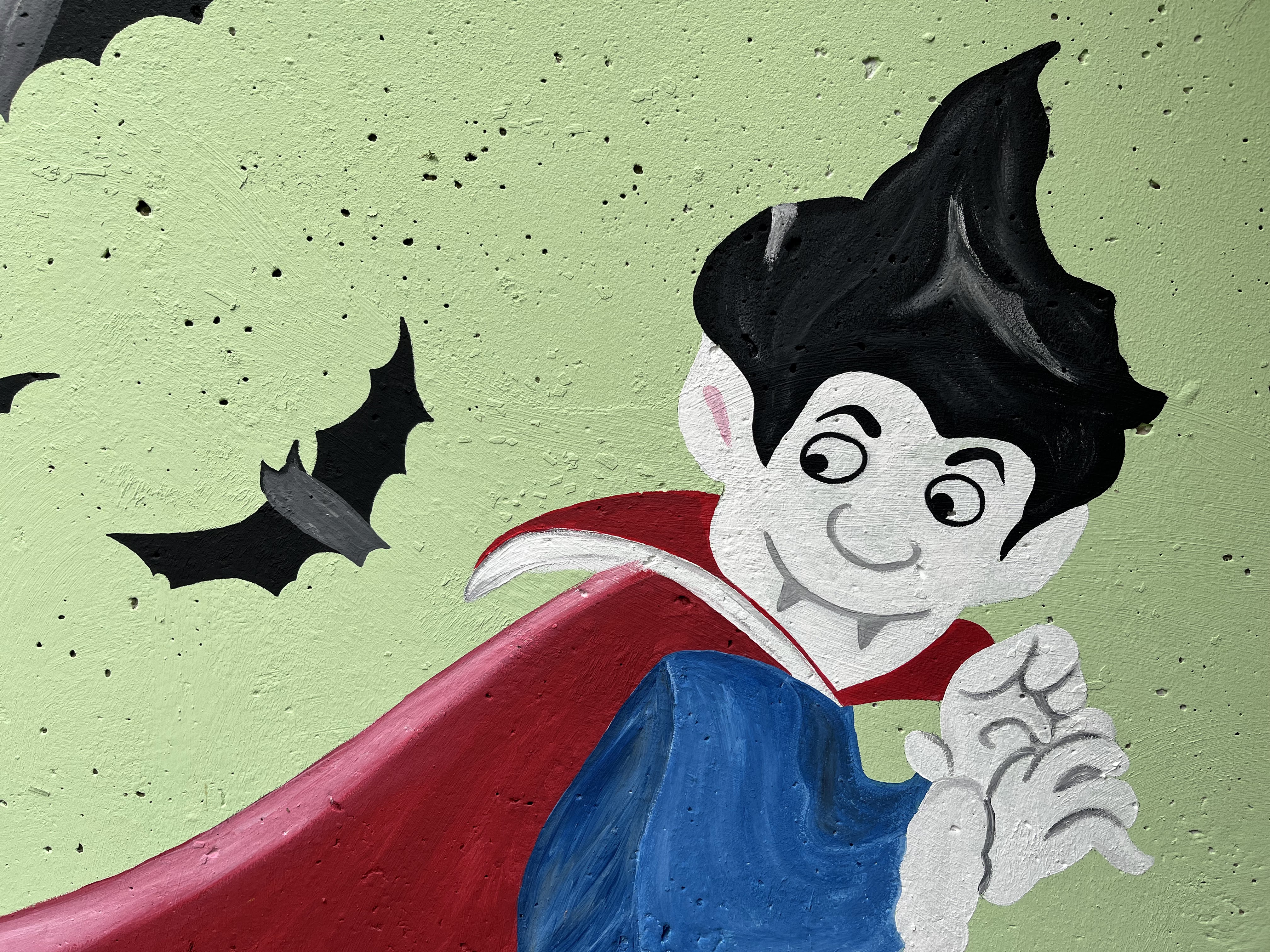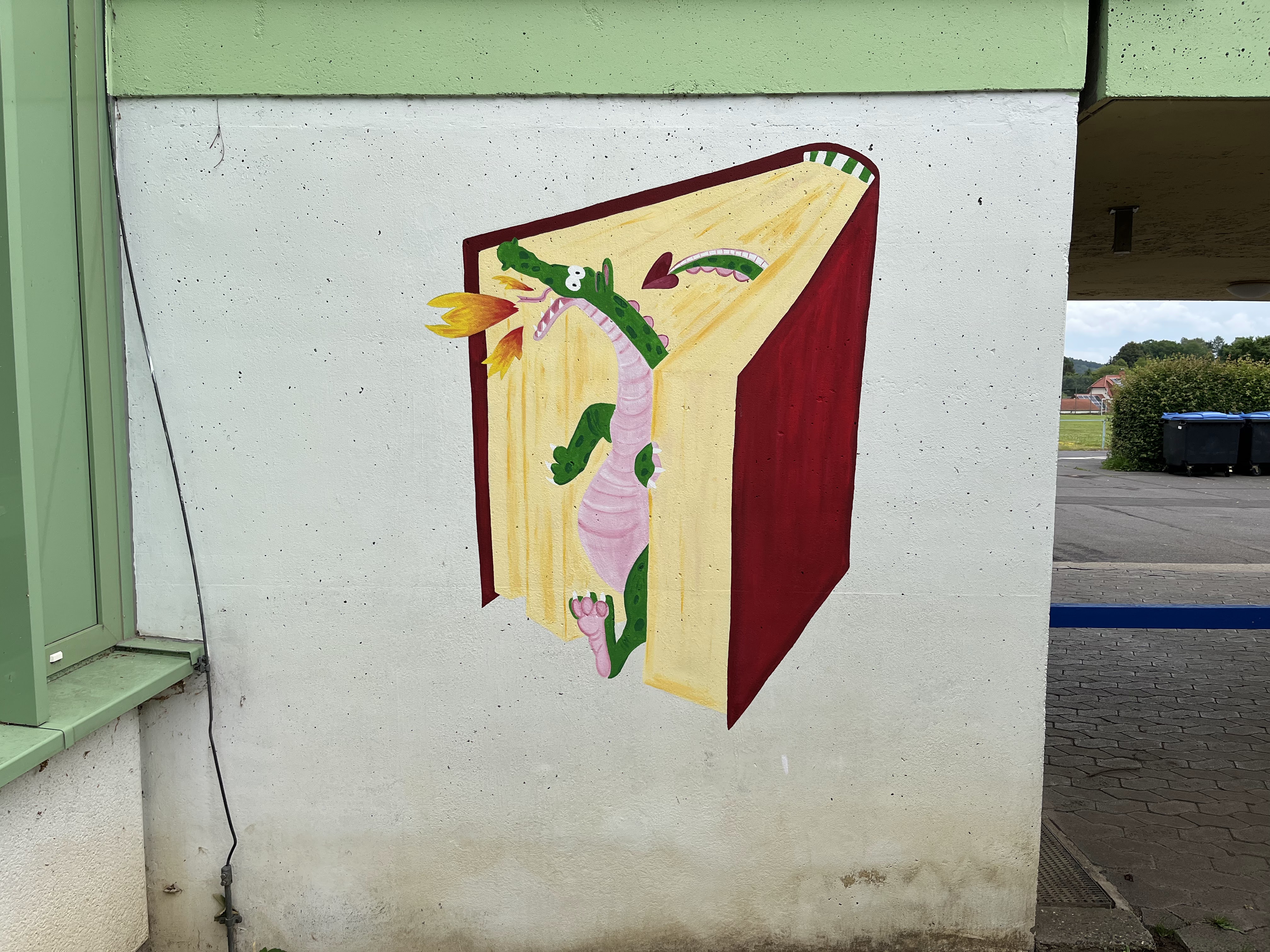 Durch die Künstlerinnen Frau Jacob und Frau Dietrich werden die Charaktere aus den Büchern von Gudrun Pausewang rund um unsere Schule lebendig. Schon jetzt sind Kinder und Kollegium von Spinatvampir und Co hellauf begeistert. Die Arbeit ist jedoch noch nicht abgeschlossen und wir können uns auf weitere Motive freuen!