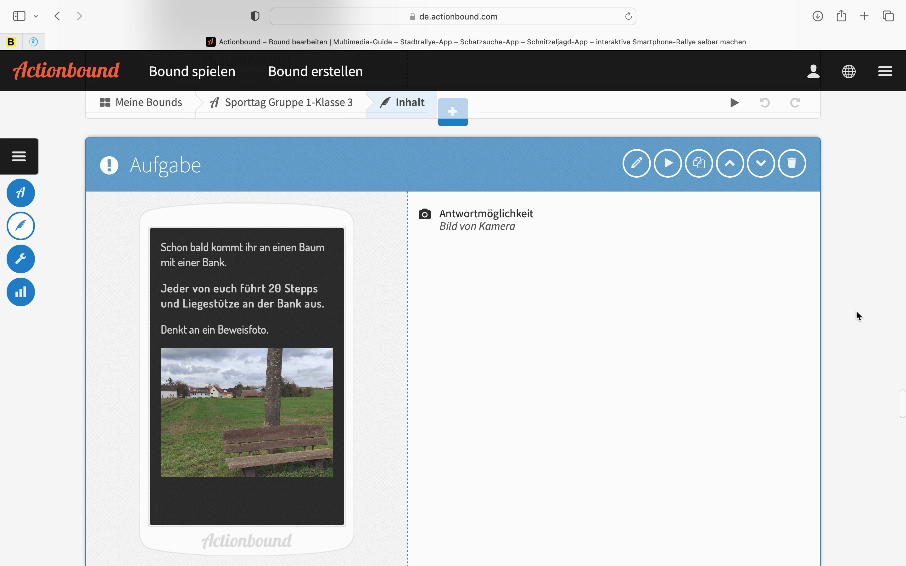 Für die Schülerinnen und Schüler der Klassen 3 und 4 stand eine digital unterstützte Schnitzeljagd mit sportlichen Aufgaben auf dem von Markus Schweda geplanten Programm. Lisa Waldschmidt erstellte für jede Klasse auf dieser Grundlage einen ActionBound: