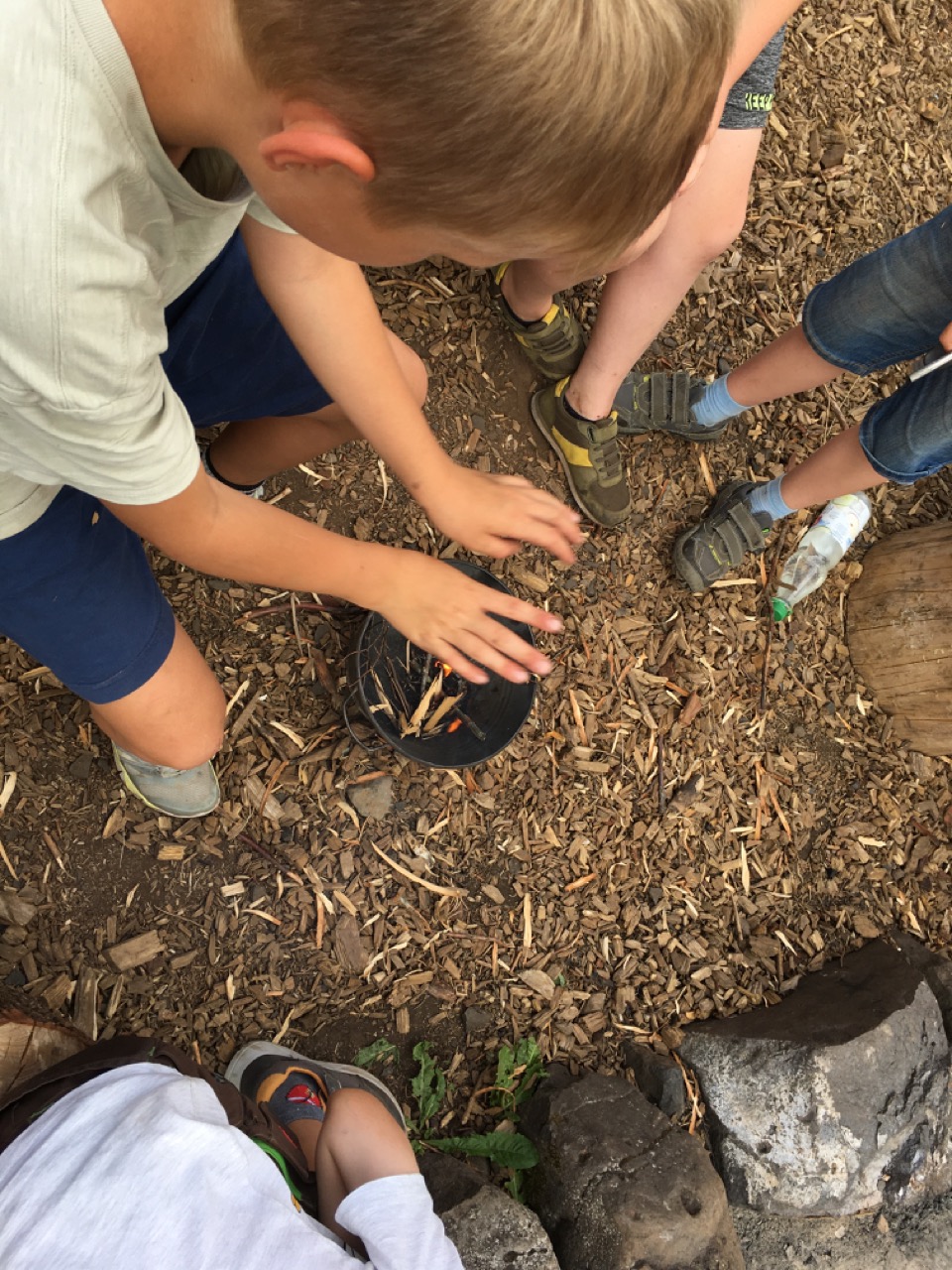 mit Feuersteinen Feuer machen. Und wir haben mehr über unseren Vulkan gelernt.