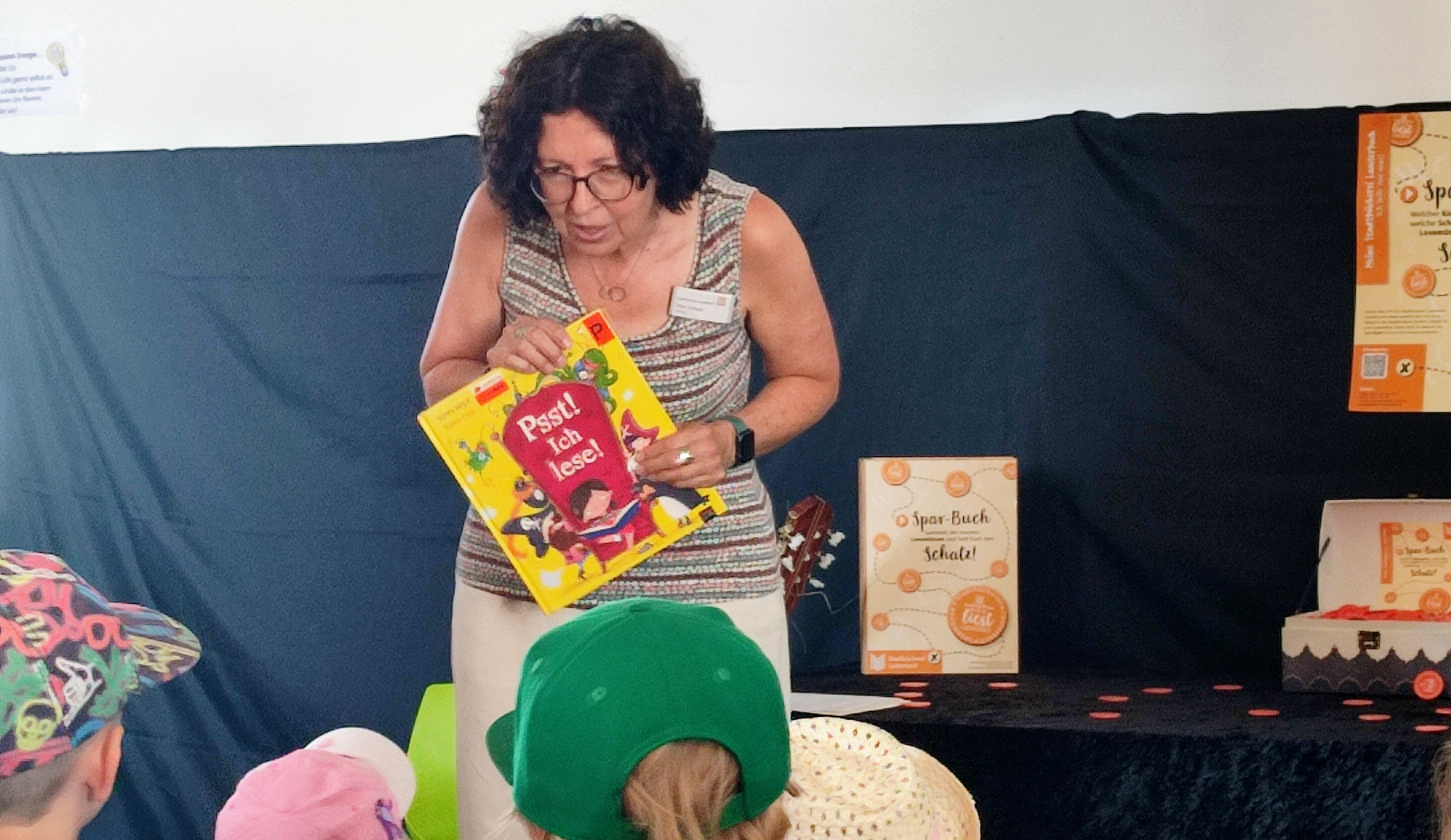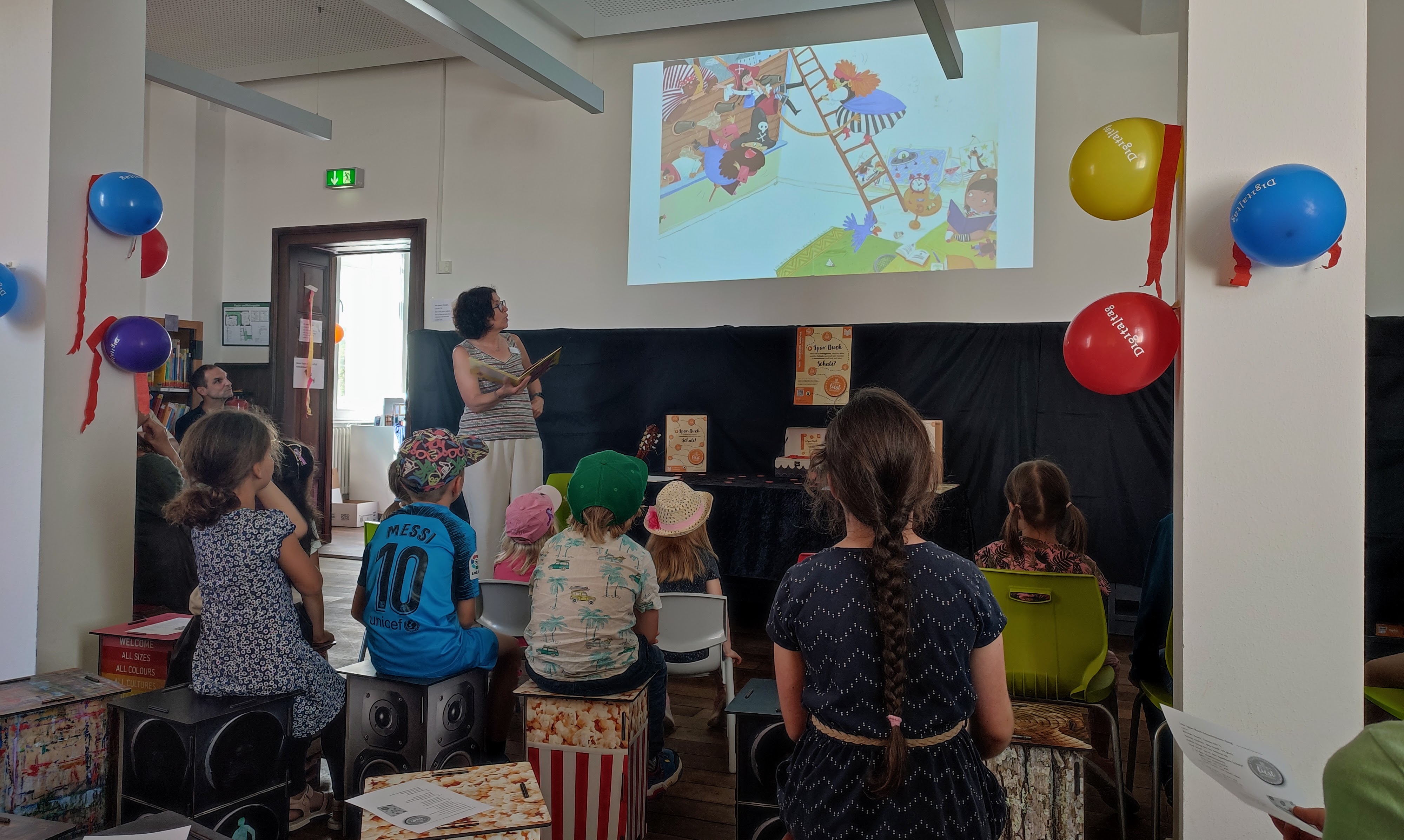Am vergangenen Mittwoch wurden wir zur Siegerehrung in die Stadtbücherei Lauterbach eingeladen. Frau Scheuer begrüßte die Kinder der Kitas und Grundschulen. Sie las ihnen das Bilderbuch „Psst! Ich lese!“ vor und zeigte die Bilder dazu über einen Beamer.