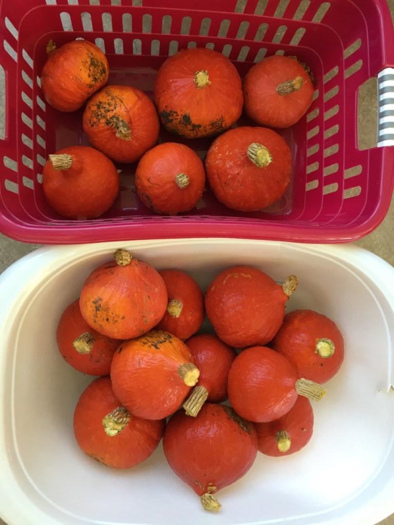 Nach den Sommerferien konnten wir sofort mit unserer Ernte beginnen. Den Hokkaidokürbis nahm jeder mit nach Hause.