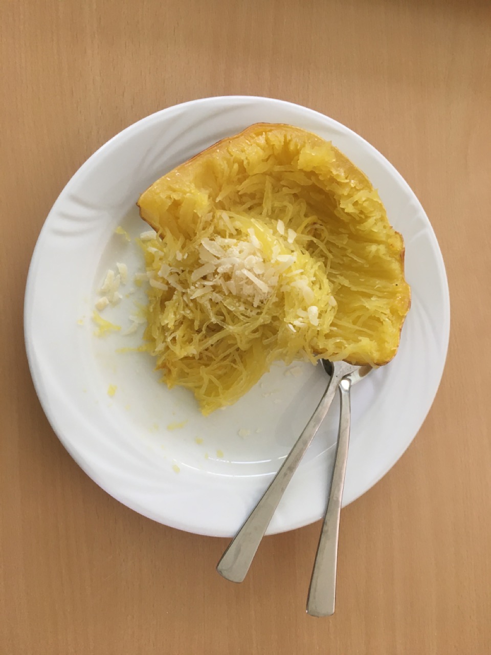 Den Spaghettikürbis bereiteten wir an unserem 400. Schultag zu. Jeder probierte und mit der Zugabe von frisch geriebenem Parmesankäse schmeckte es schließlich allen Kindern.