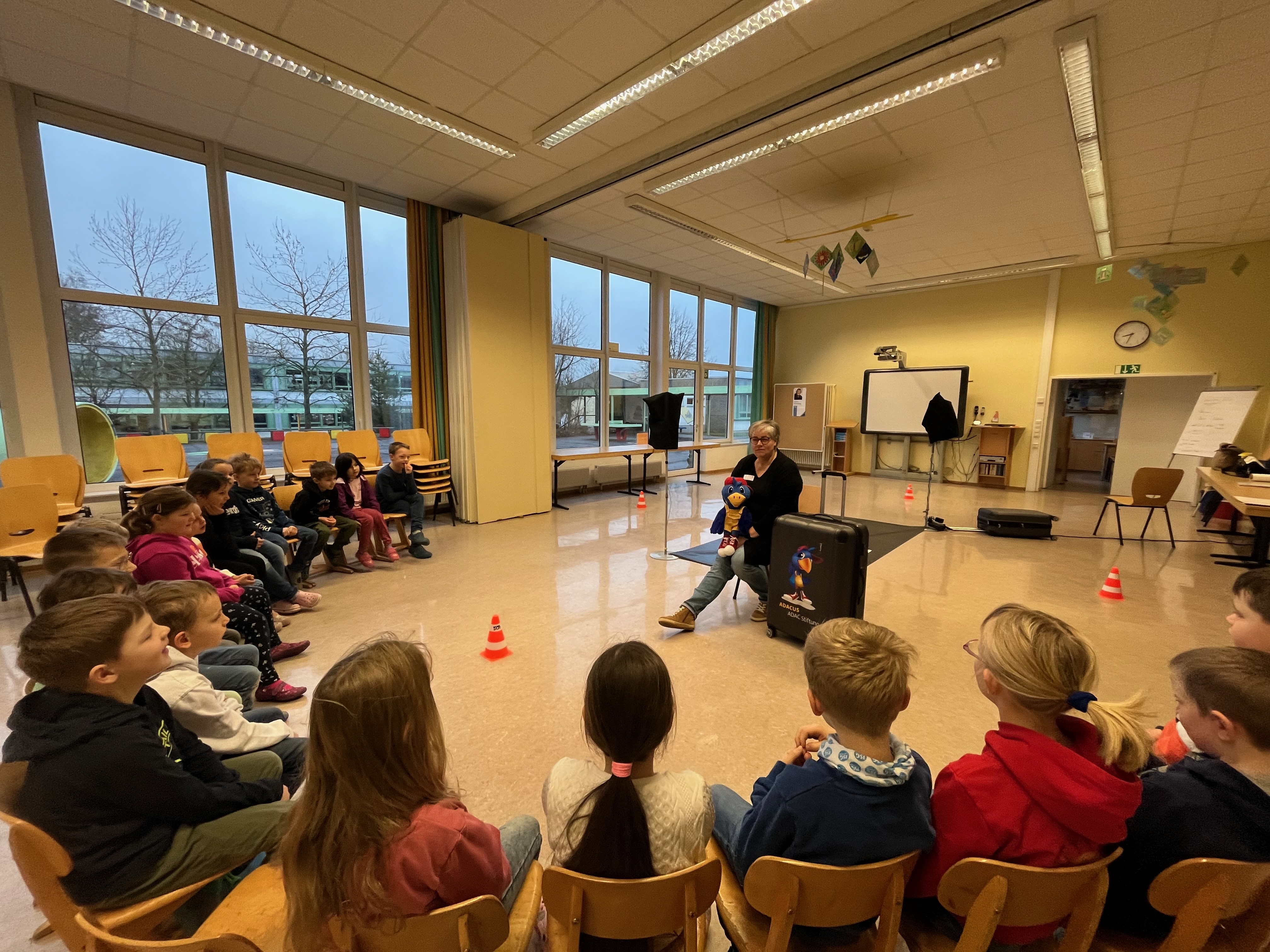 Am Donnerstag, dem 1. Februar 2024, fand in unserer Schule ein Verkehrssicherheitstraining für die Kinder der Klasse 1 statt. Frau Heiß von der ADAC Stiftung besuchte uns in der Aula und nahm die Kinder mit auf eine spannende Reise durch den Straßenverkehr.