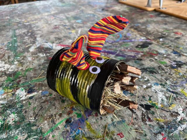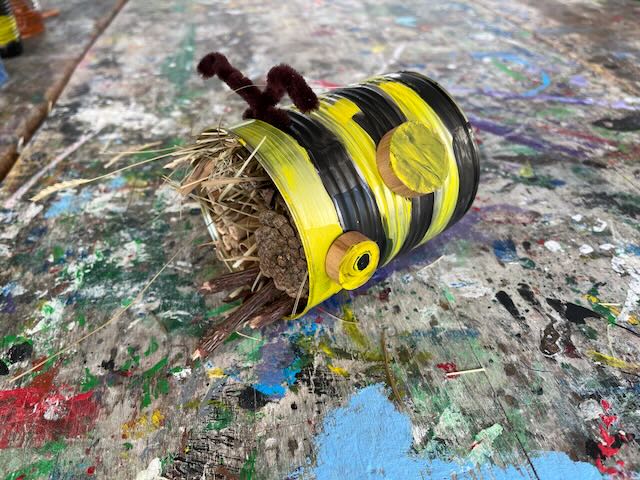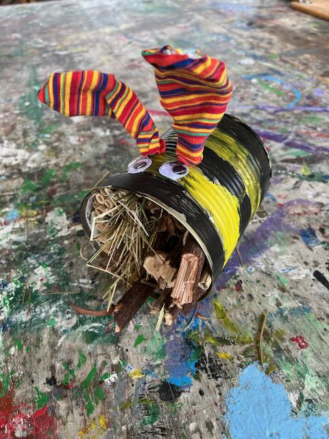 Im Kunstunterricht der Klasse 1 stand in den letzten Wochen ein ganz besonderes Projekt auf dem Programm: Die Schülerinnen und Schüler bauten Insektenhotels.