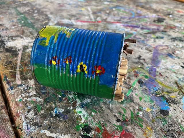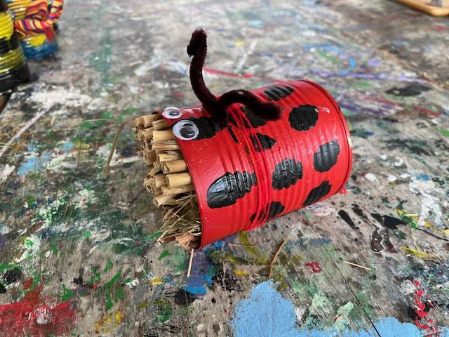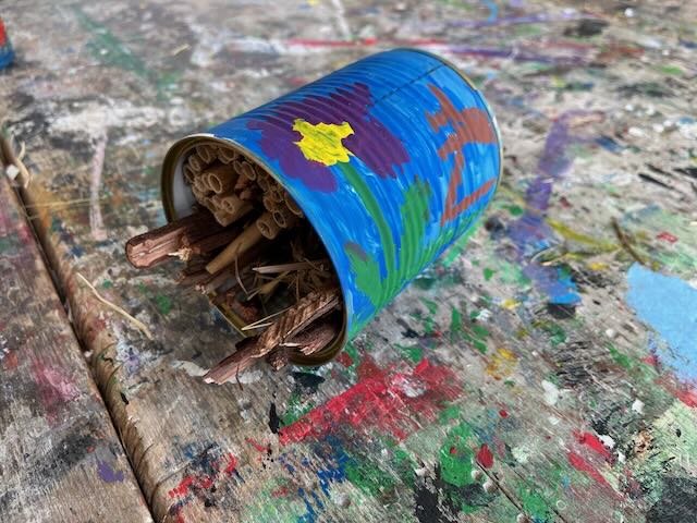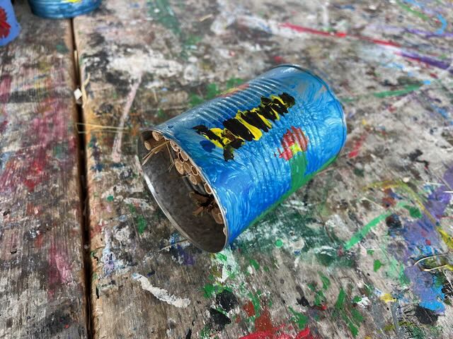 Mit viel Eifer und Kreativität werkelten die Kinder an ihren kleinen „Häuschen“ für die nützlichen Insekten. Aus Holz, Bambus, Stroh und Tannenzapfen entstanden aus den leeren Blechdosen wahre Kunstwerke, die nicht nur schön aussehen, sondern auch den Insekten einen wichtigen Unterschlupf bieten.