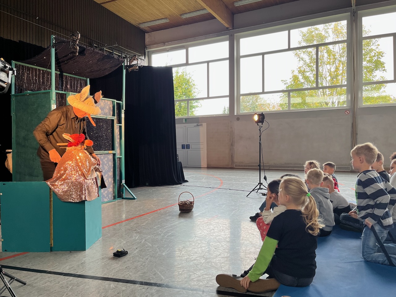 Am 02. Oktober 2024 gastierte die Niekamp Theater Company aus Bielefeld an unserer Schule, um für die Schülerinnen und Schüler sowie für die künftigen Erstklässler aus den Kindertagesstätten das Märchen „Der kleine Muck“ von Wilhelm Hauff aufzuführen.