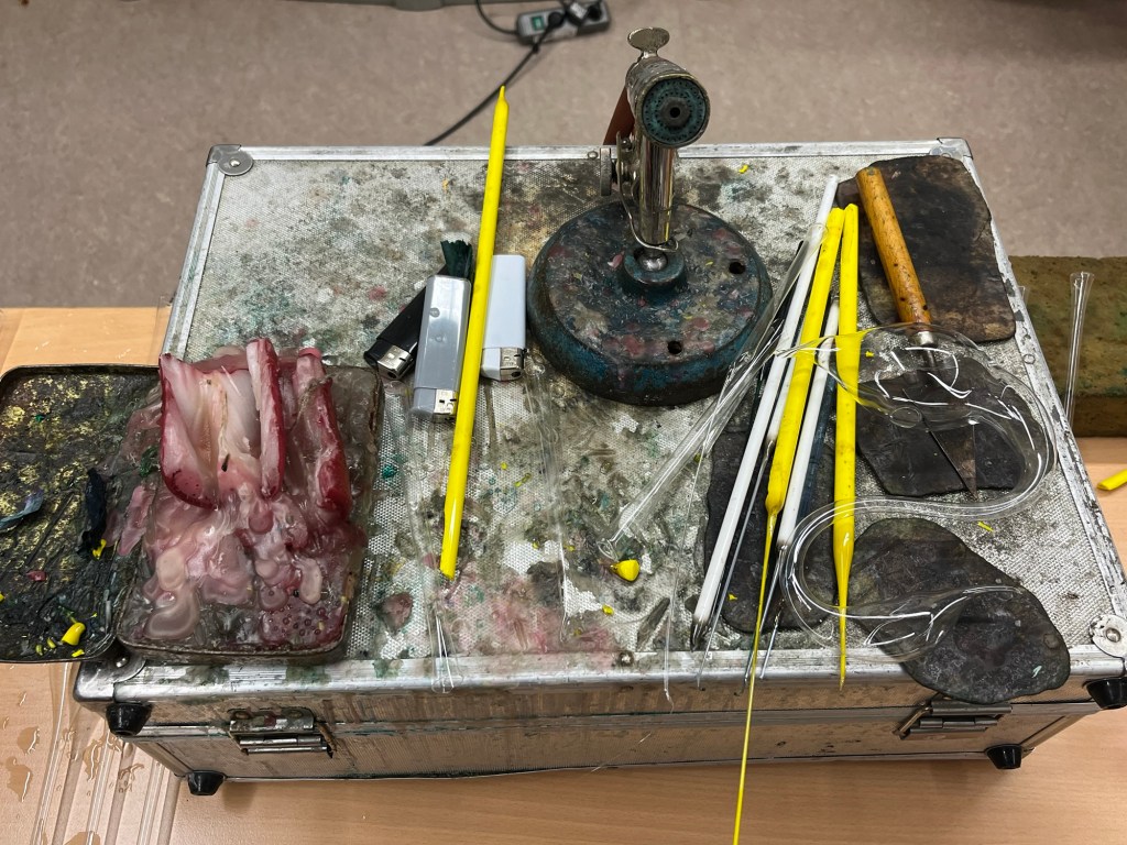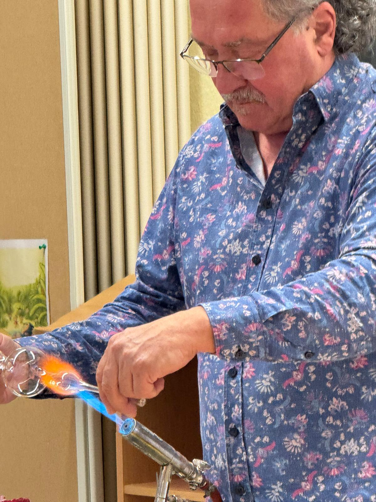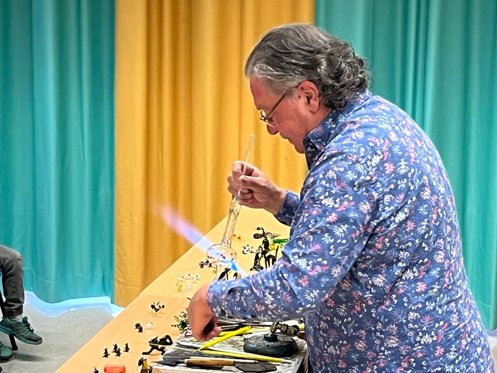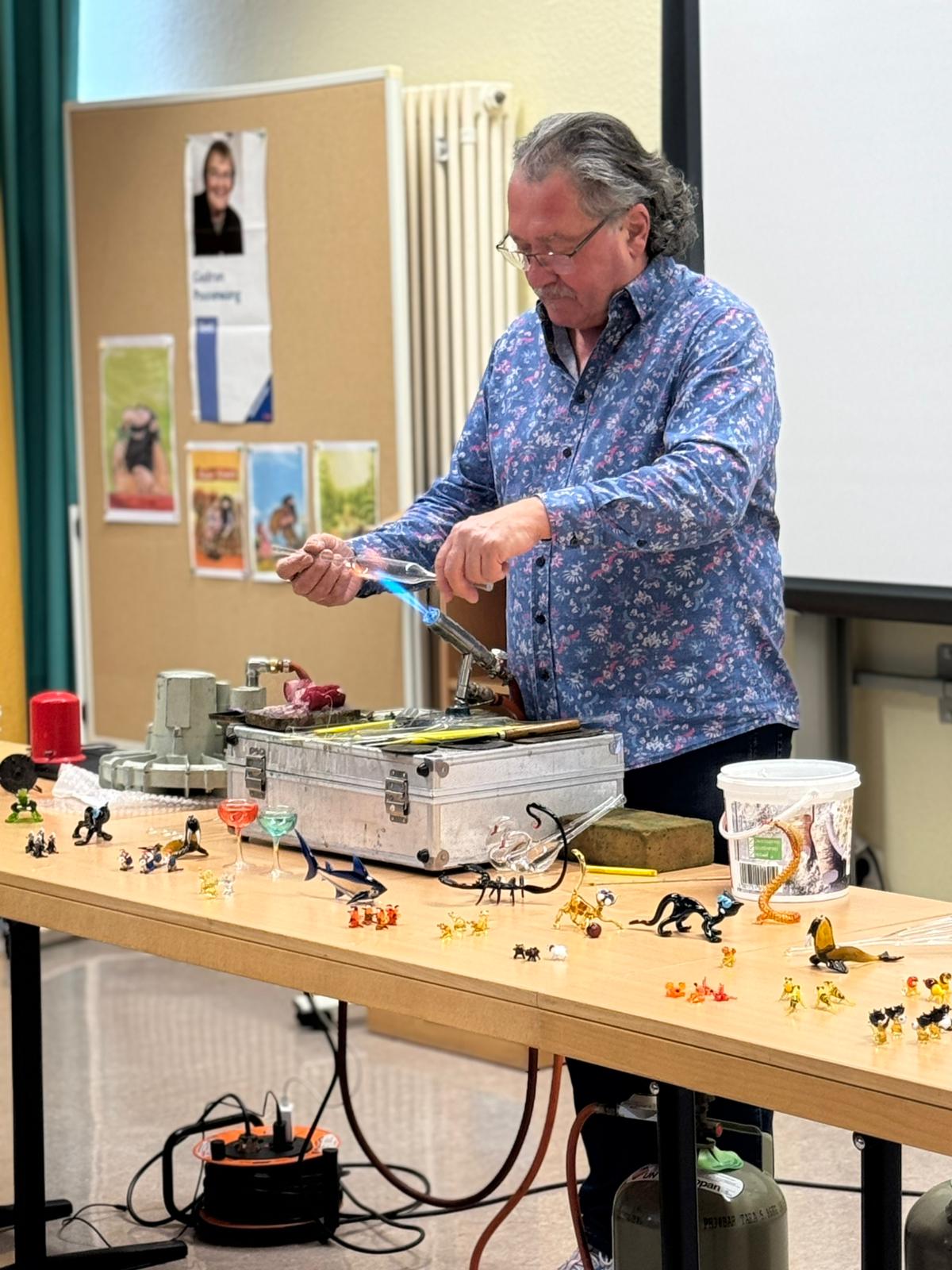 Am 27.11. war der Glasbläser, Helmut Sommer aus Coburg, nach vier Jahren wieder zu Gast, um uns die Arbeit seines beeindruckenden „heißen Berufs“ vorzuführen.
