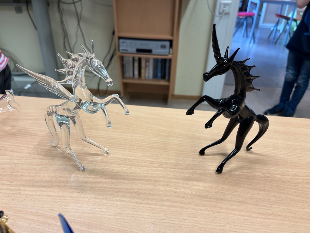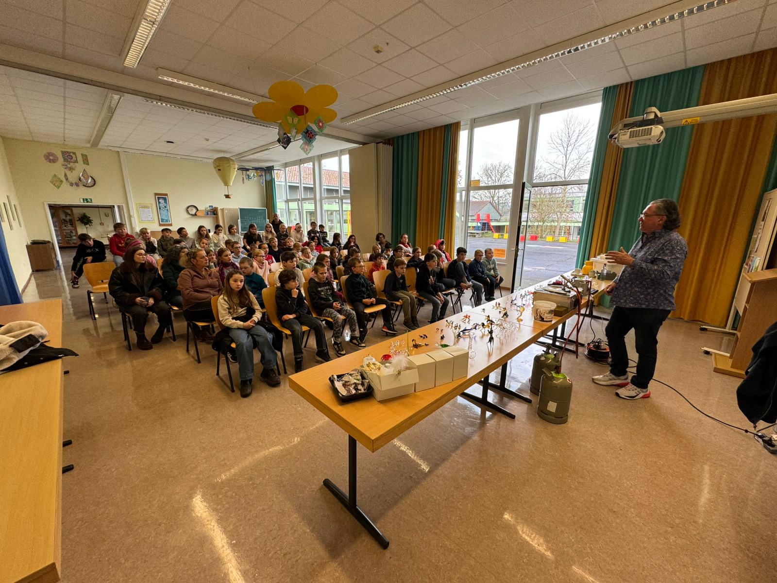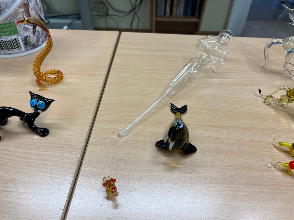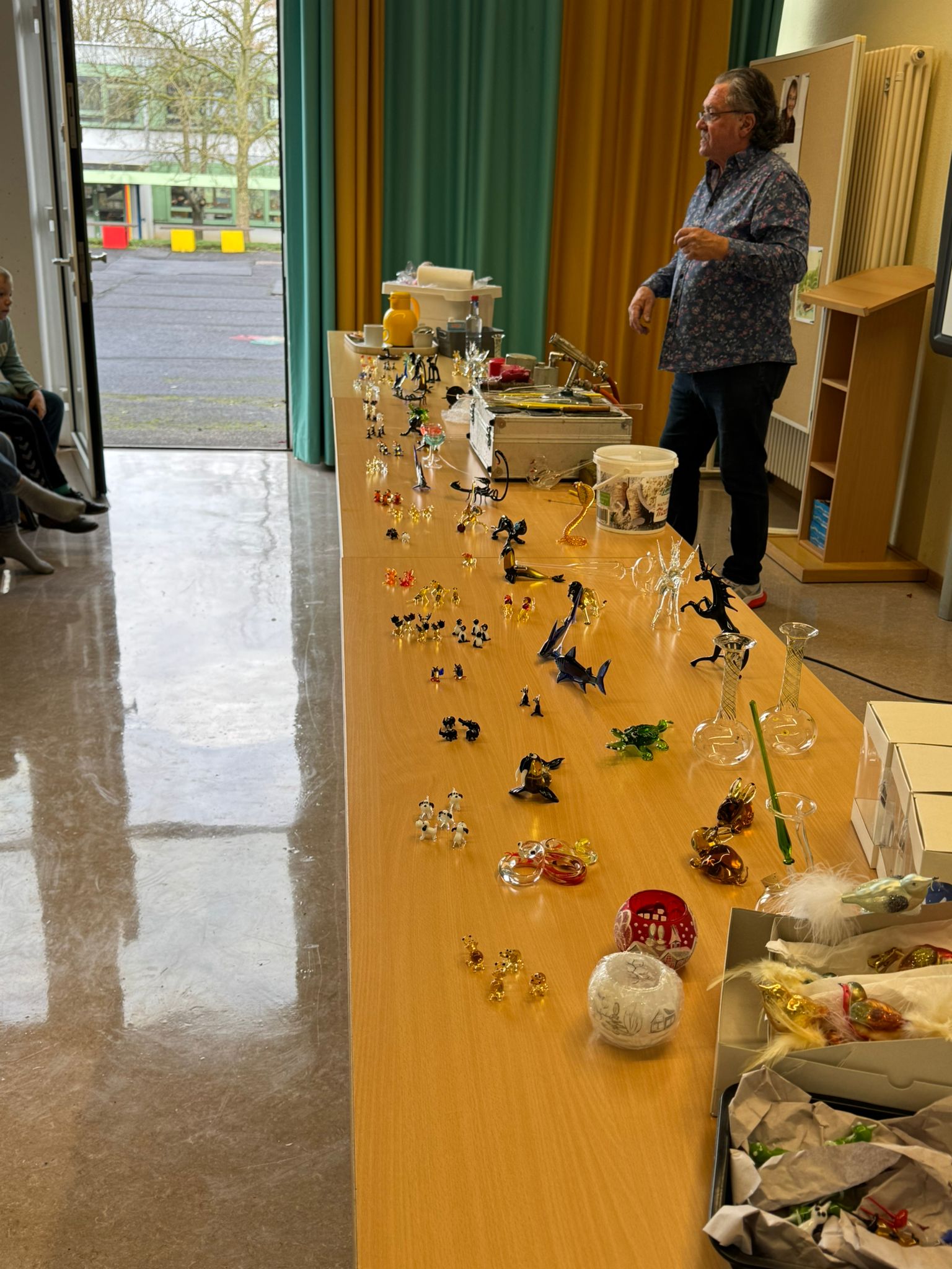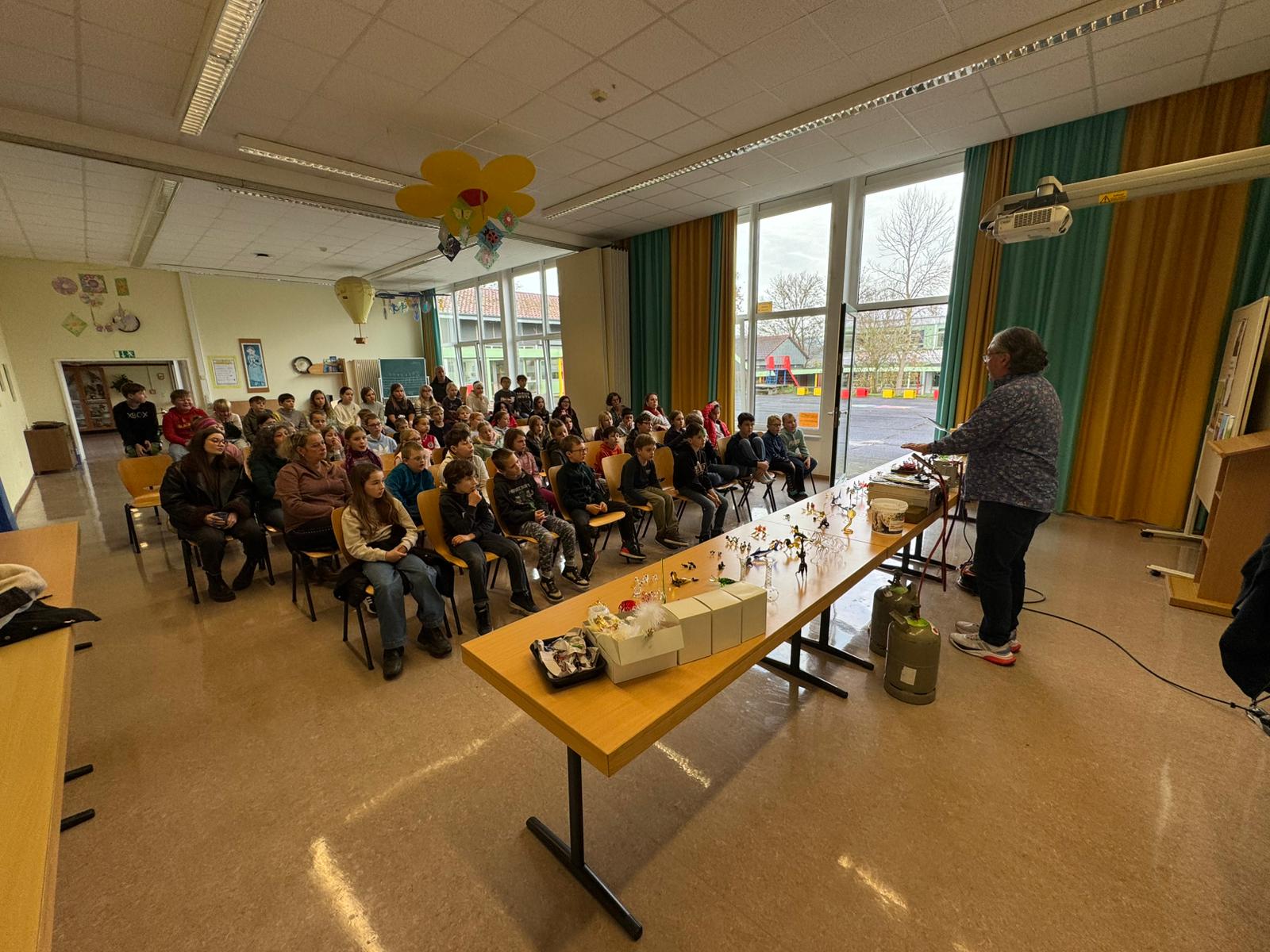 Im Anschluss an die Vorführung konnten die Schülerinnen und Schüler kunstvolle kleine, farbige Figuren aus Glas erstehen. Sicher war auch das ein oder andere Weihnachtsgeschenk dabei.