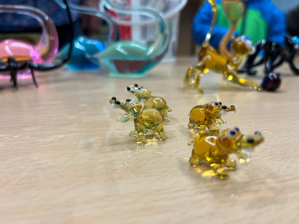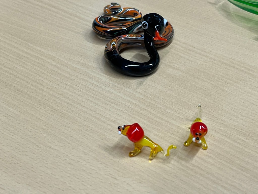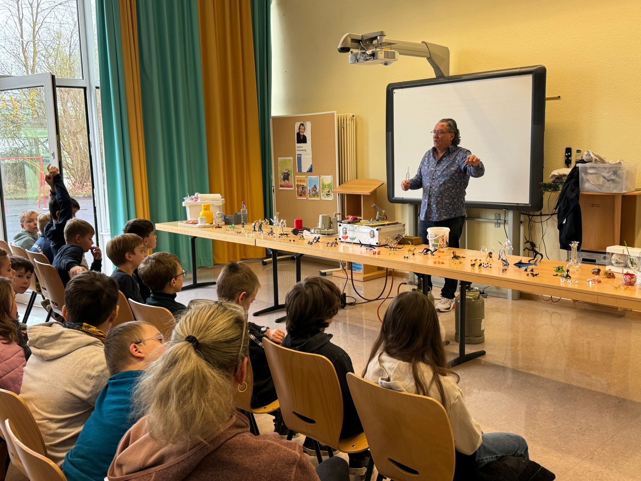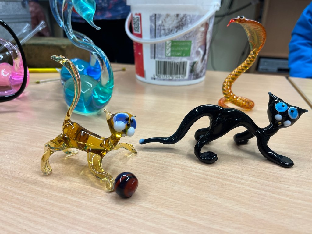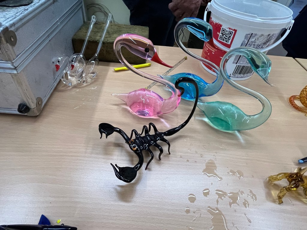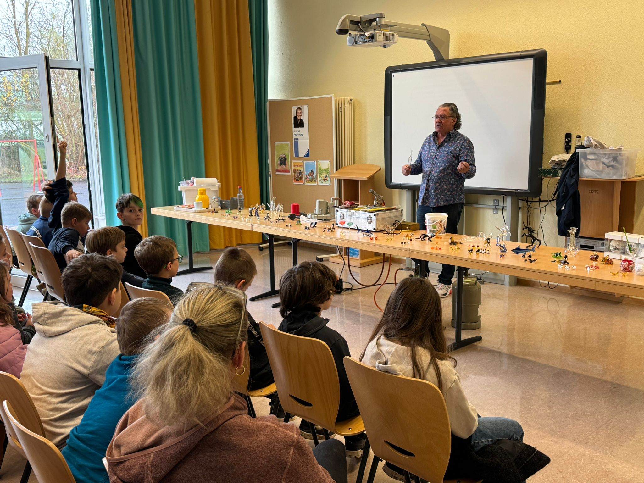 Im Anschluss an die Vorführung konnten die Schülerinnen und Schüler kunstvolle kleine, farbige Figuren aus Glas erstehen. Sicher war auch das ein oder andere Weihnachtsgeschenk dabei.
