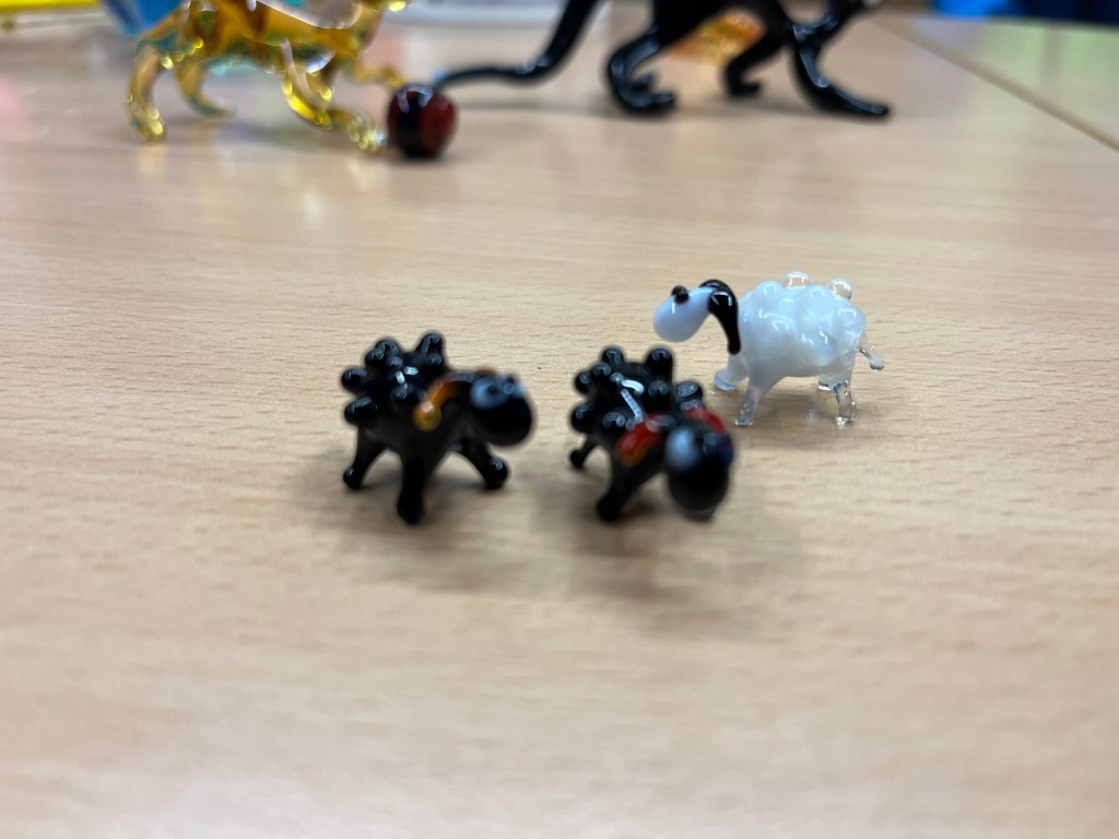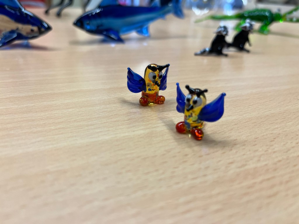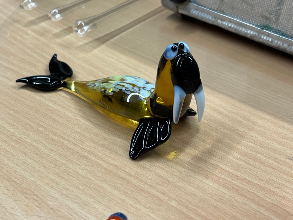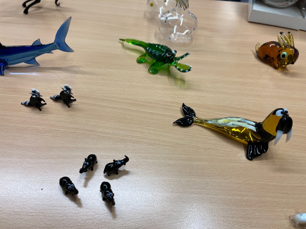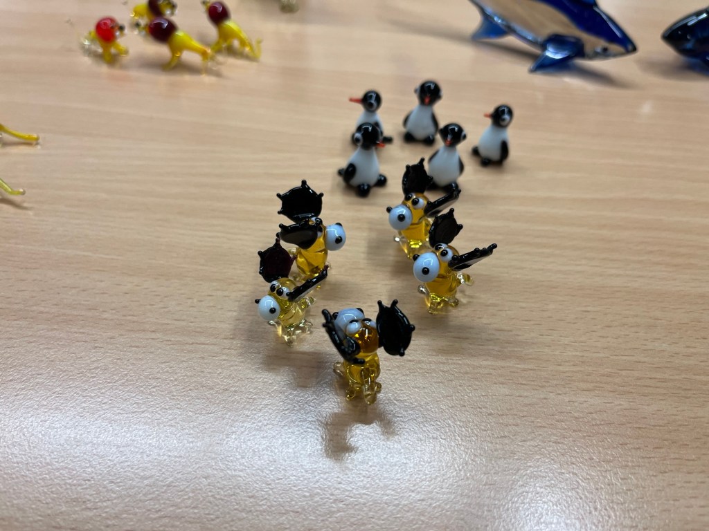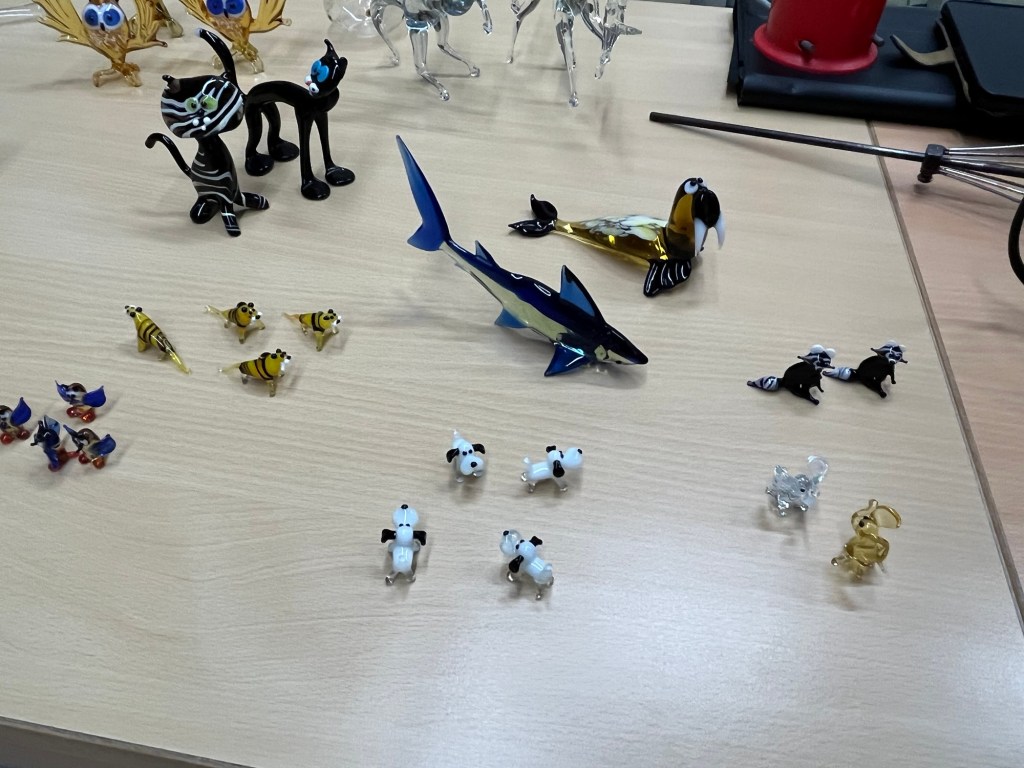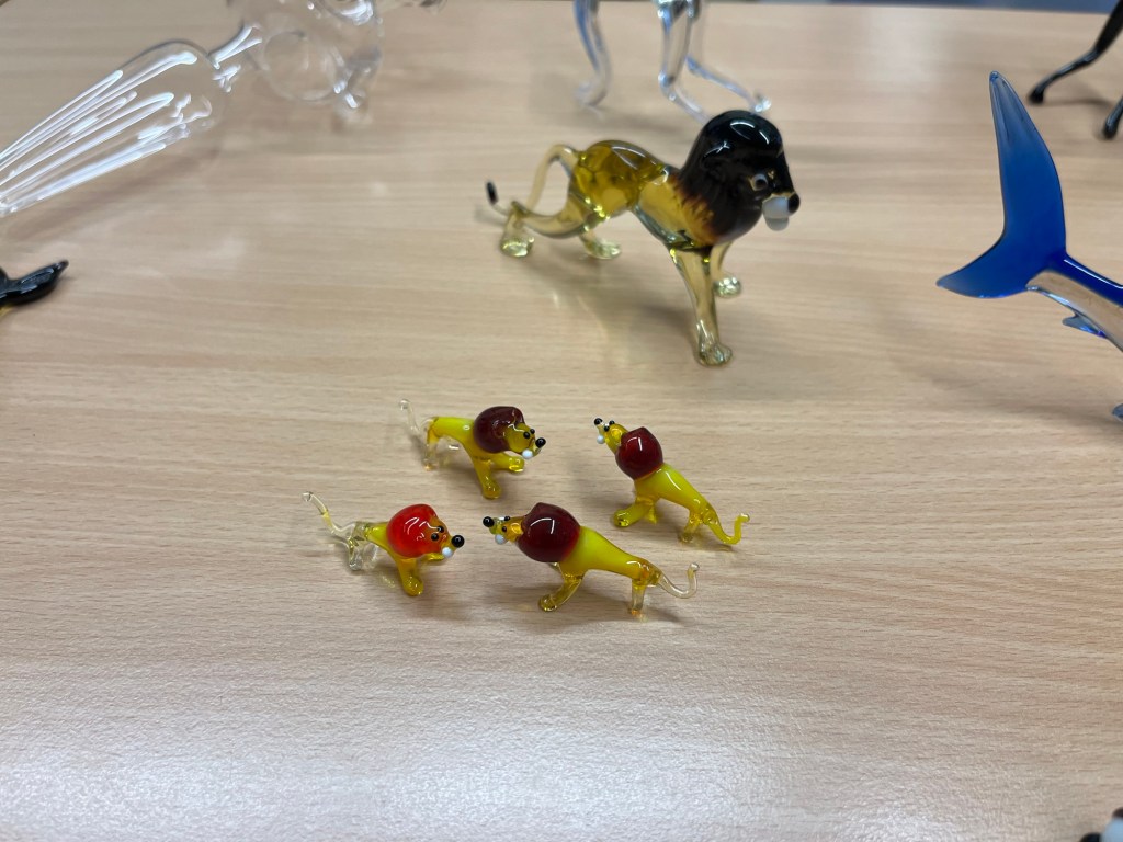 Im Anschluss an die Vorführung konnten die Schülerinnen und Schüler kunstvolle kleine, farbige Figuren aus Glas erstehen. Sicher war auch das ein oder andere Weihnachtsgeschenk dabei.