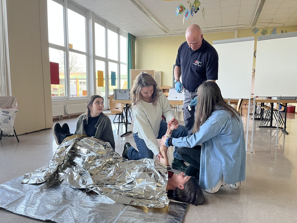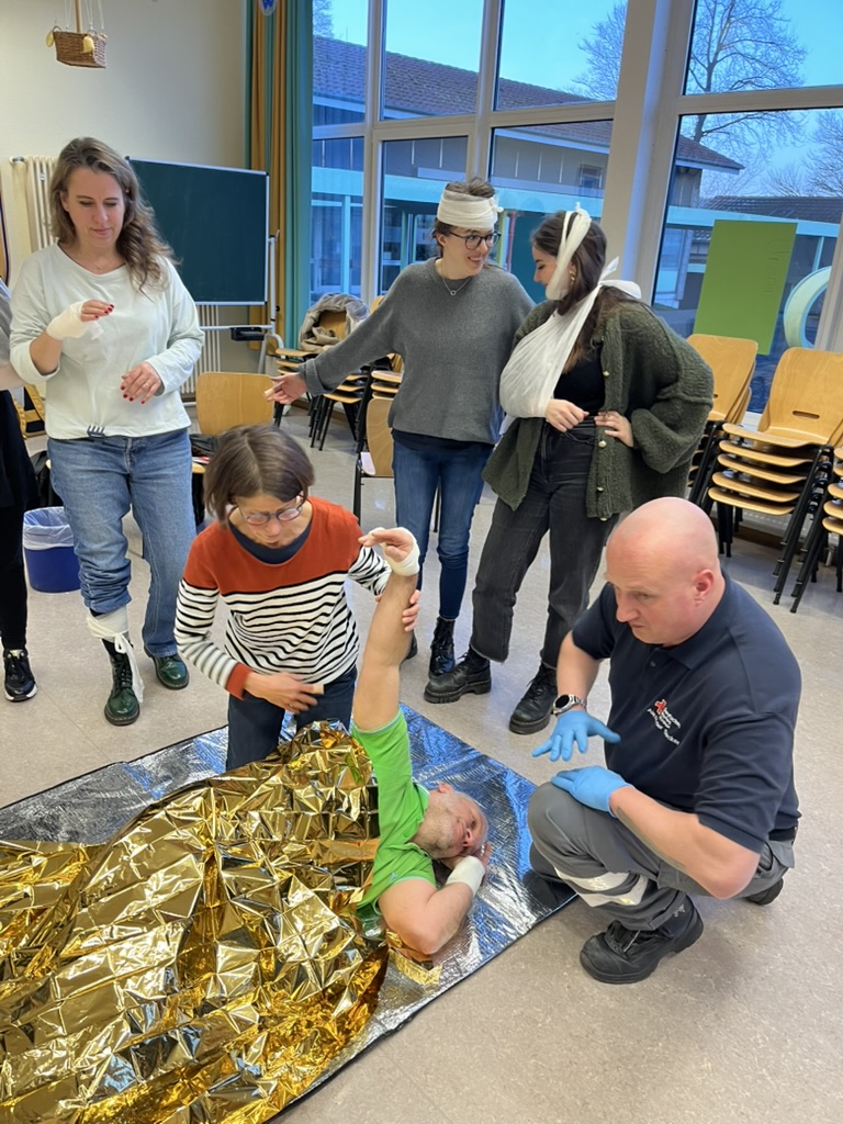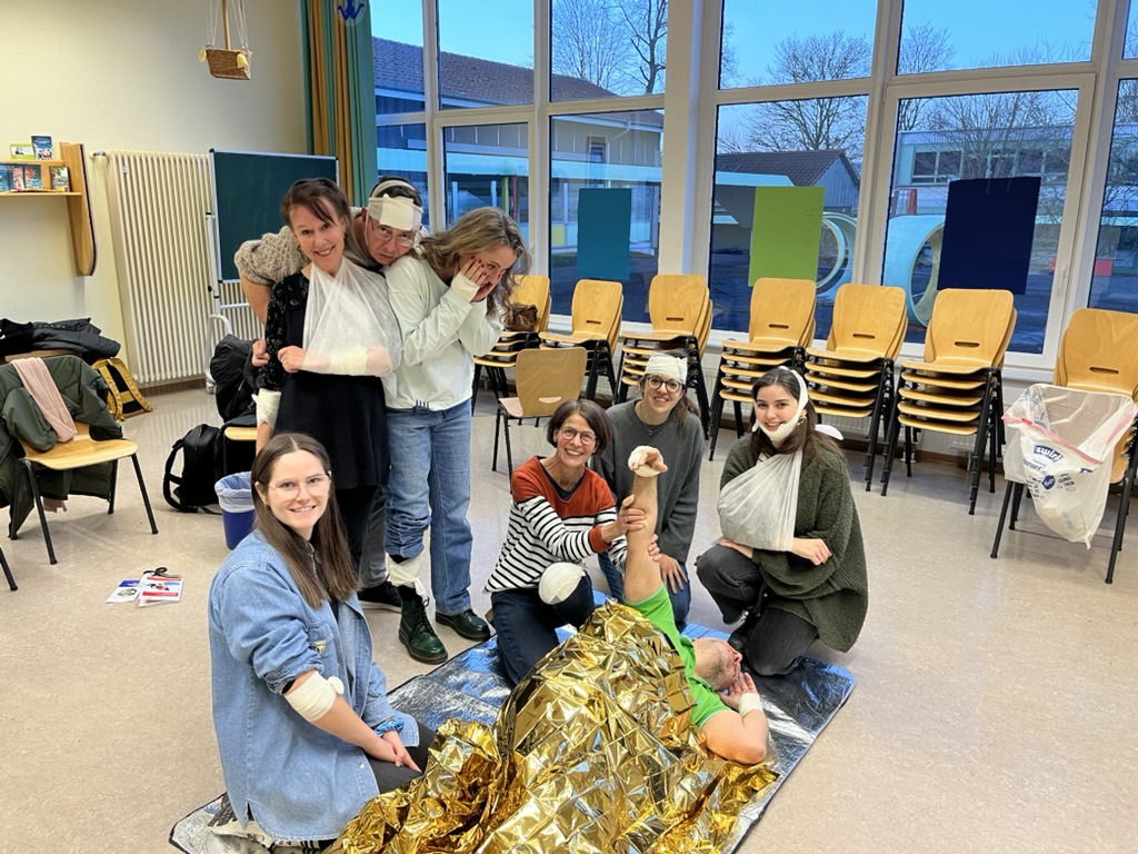 Lehrerinnen und Lehrer müssen ihre Erste-Hilfe-Kenntnisse regelmäßig auffrischen, um im Notfall sicher handeln zu können. In guter Atmosphäre konnten wir bewährte Maßnahmen wiederholen und Neues dazulernen. Alex ging dabei gezielt auf unsere Fragen und Wünsche ein und machte das Training durch praxisnahe Übungen besonders anschaulich.