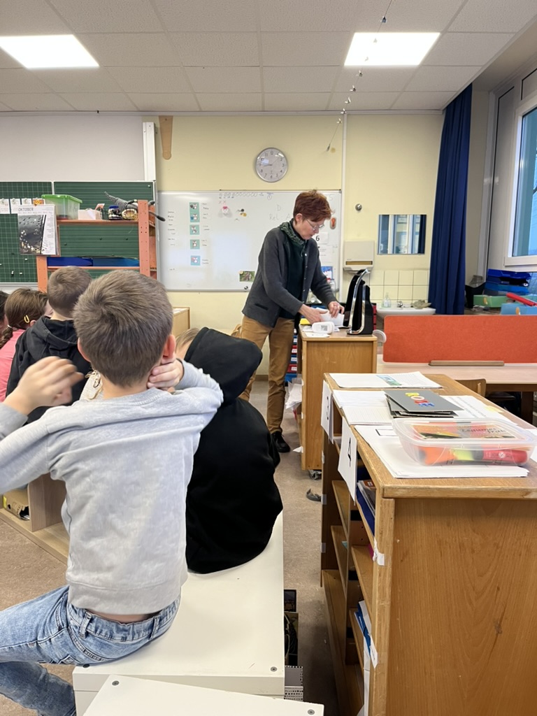 Heute war Anne Treffler von der Johann-Peter-Schäfer-Schule in Friedberg zu Gast in der Fuchsklasse. Die Schule ist auf die Bedürfnisse von Kindern mit Sehbeeinträchtigungen spezialisiert. Um unseren Schülerinnen und Schülern ein Gefühl dafür zu vermitteln, wie es ist, mit einer Sehbeeinträchtigung in der Schule zu arbeiten, hatte Frau Treffler spezielle Brillen mitgebracht, die verschiedene Einschränkungen simulierten.