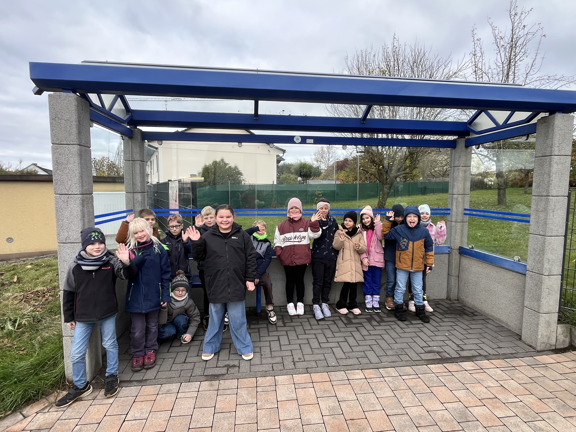 Beim Rückweg mussten wir auf den Bus warten. Das war aber nicht langweilig, weil wir jedes Mal, wenn wir einen LKW gesehen haben, das Zeichen für „HUPEN!“ gemacht haben – und fast jeder LKW-Fahrer hat gelacht, gewunken und gehupt. Wir hatten viel Spaß!